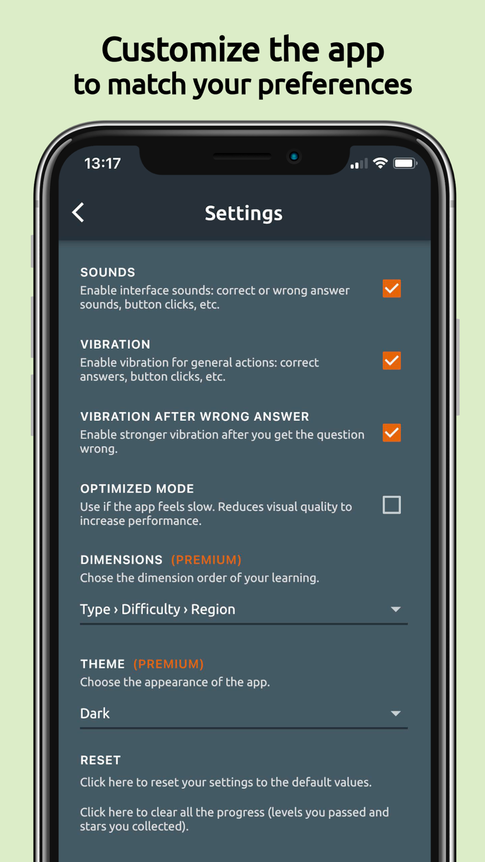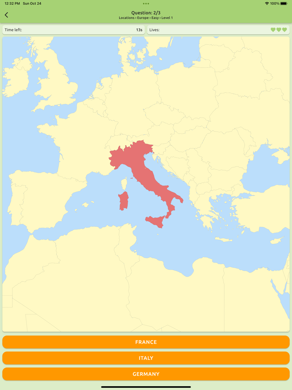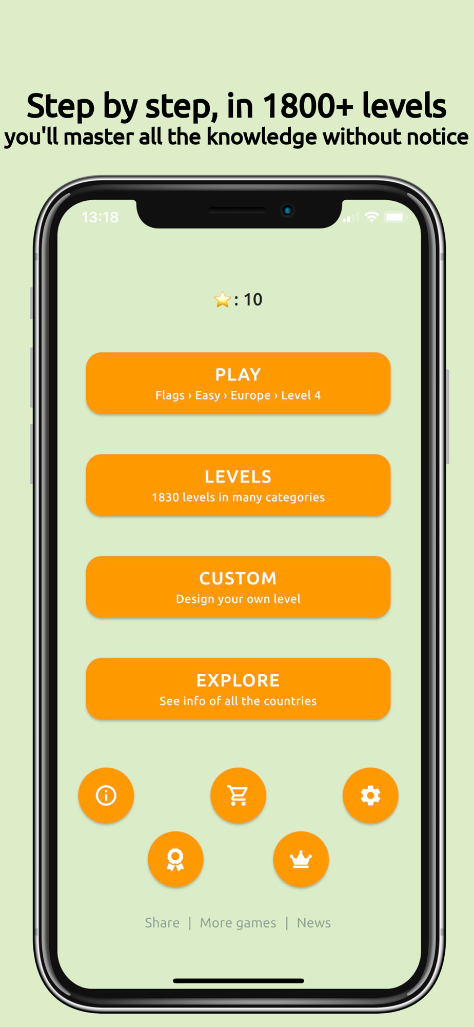 - Customize your own levels (what to learn, which countries and how difficulty).