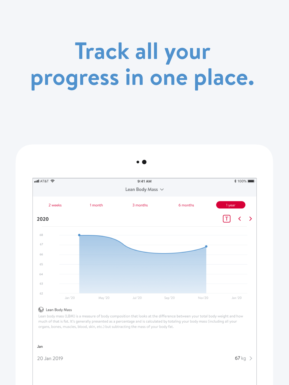 - Connect to wearable devices like Apple Watch (synced to Health app), Fitbit and Withings to sync body stats instantly