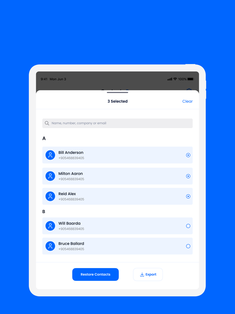 Thanks to ContactBackUpProX,you can backup your contacts with a single touch and you can export your contacts in vcard, pdf, excel, csv, txt formats and keep your contacts safely. You can also save your contacts in your notes, print them, and store them on your computer easily and never lose them