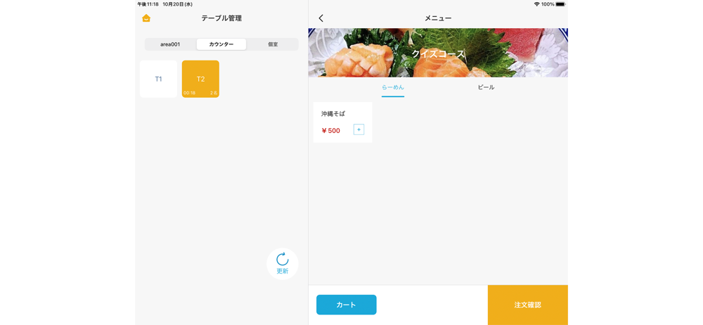 テーブル別の注文情報を確認することが出来き、またレシートプリンターなどの周辺機器と連動することができます。