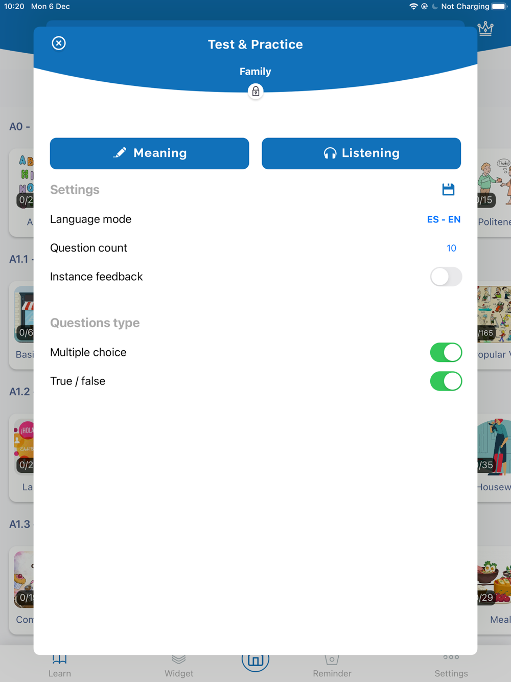 - Able to create multiple widgets or reminders for the words in the topic you want to learn.