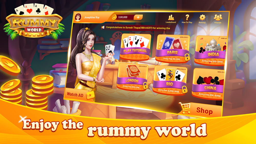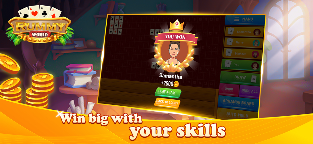 Rummy world Classic lets you play Rummy Tile games against artificial intelligence at different levels with different bets. You will earn coins by playing and winning against AI. You can earn millions of coins and play in high-bet rooms against artificial intelligence if you are a really good rummy player.