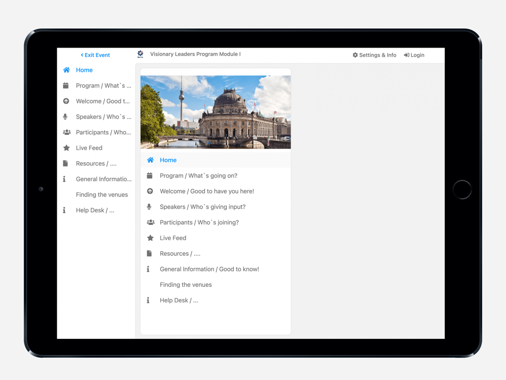The BIOTRONIK Visionary Leaders Program app provides easy access to relevant information such as program details, logistics and profiles of participants.