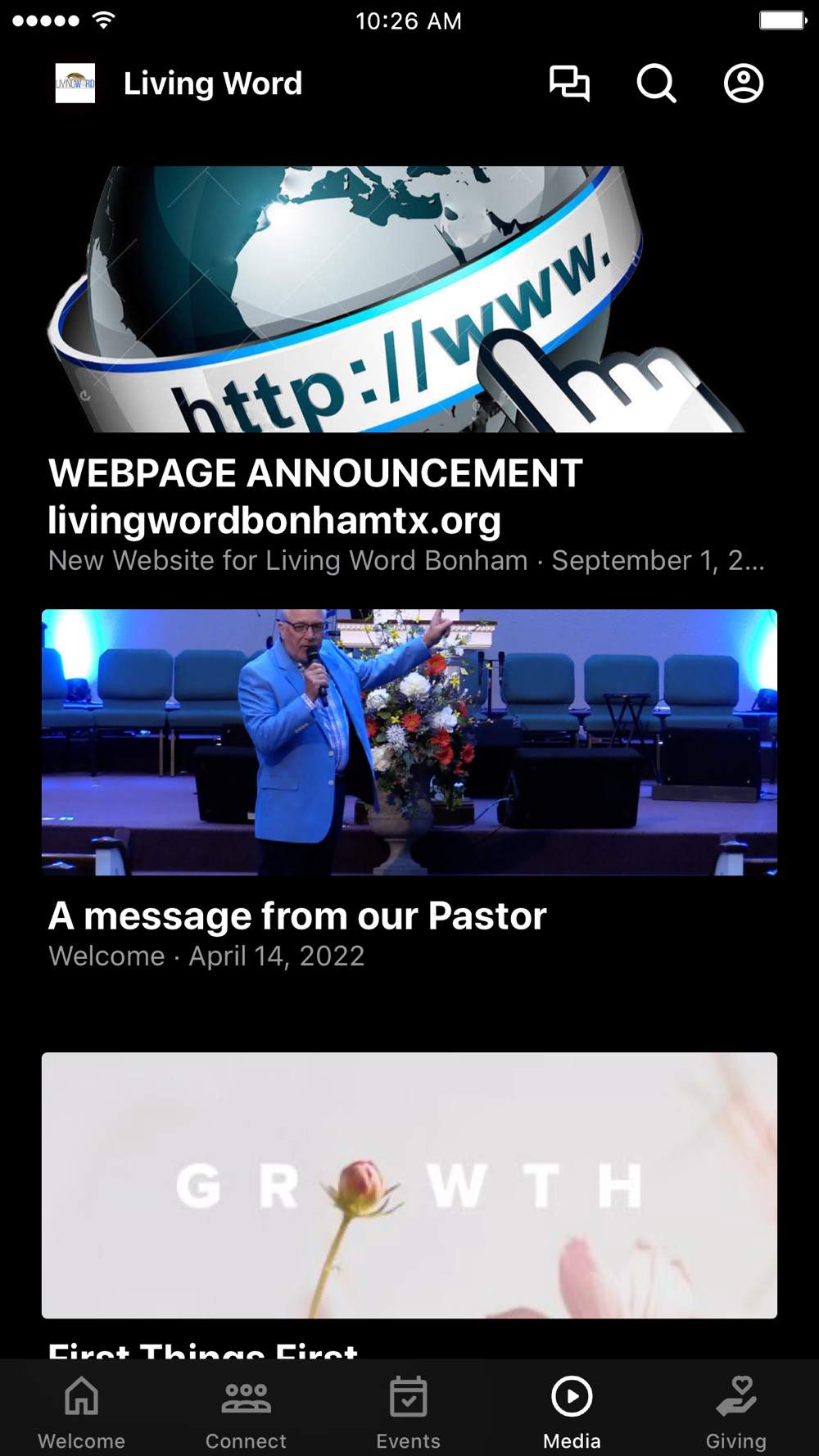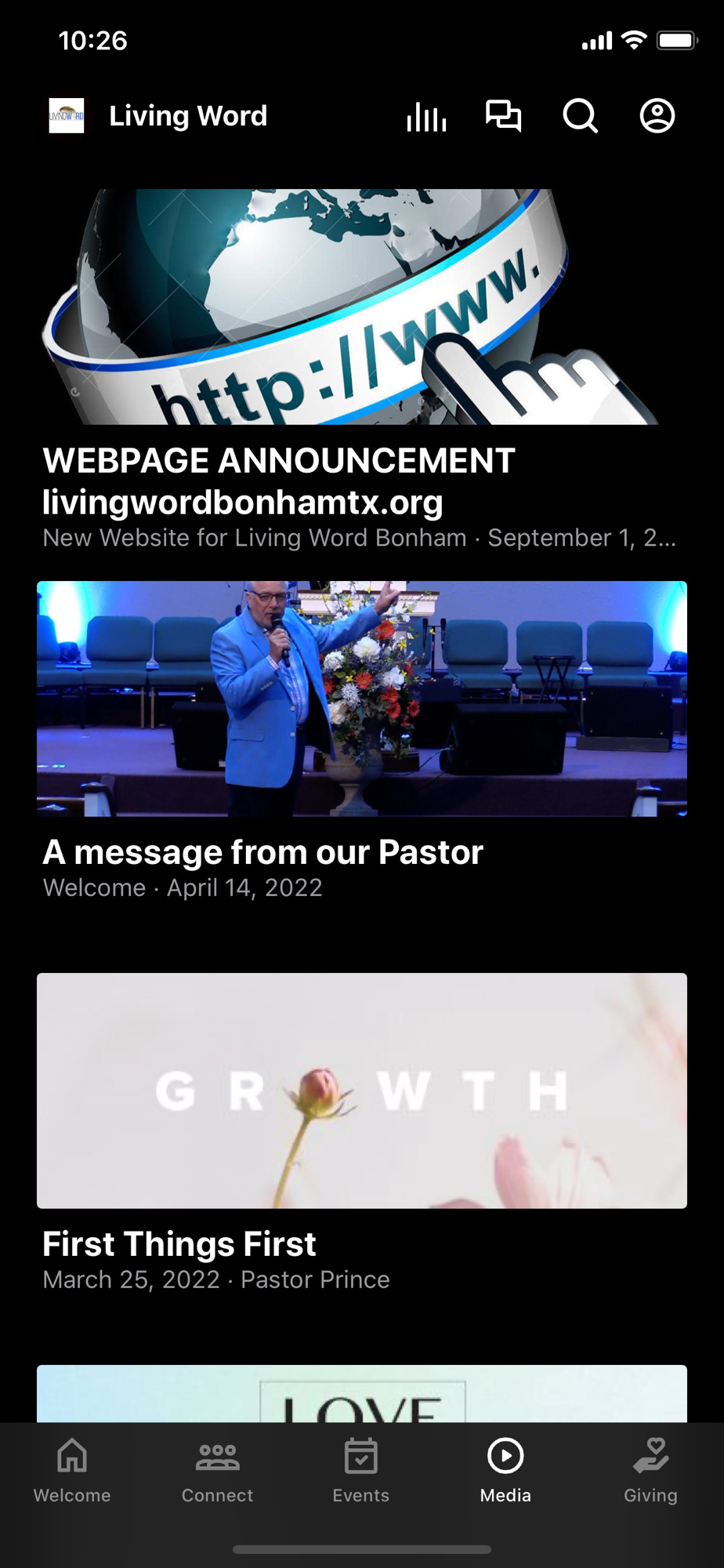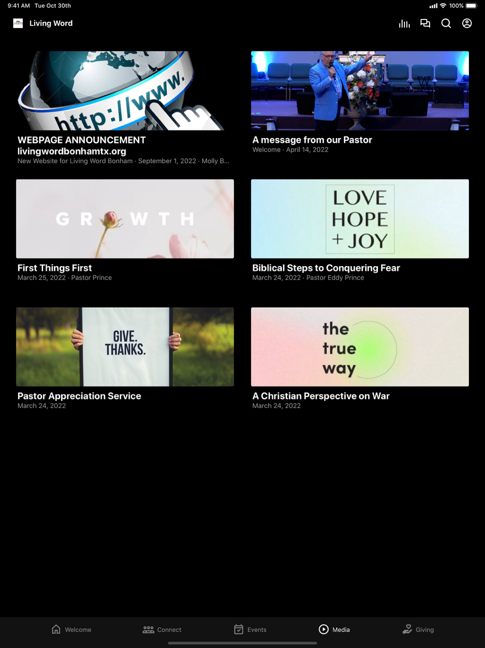 This app will help you stay connected with the day-to-day life of Living Word Church of God. With this app you can: watch or listen to past messages; stay up to date with push notifications; share your favorite messages via Twitter, Facebook, or email; and download messages for offline listening.