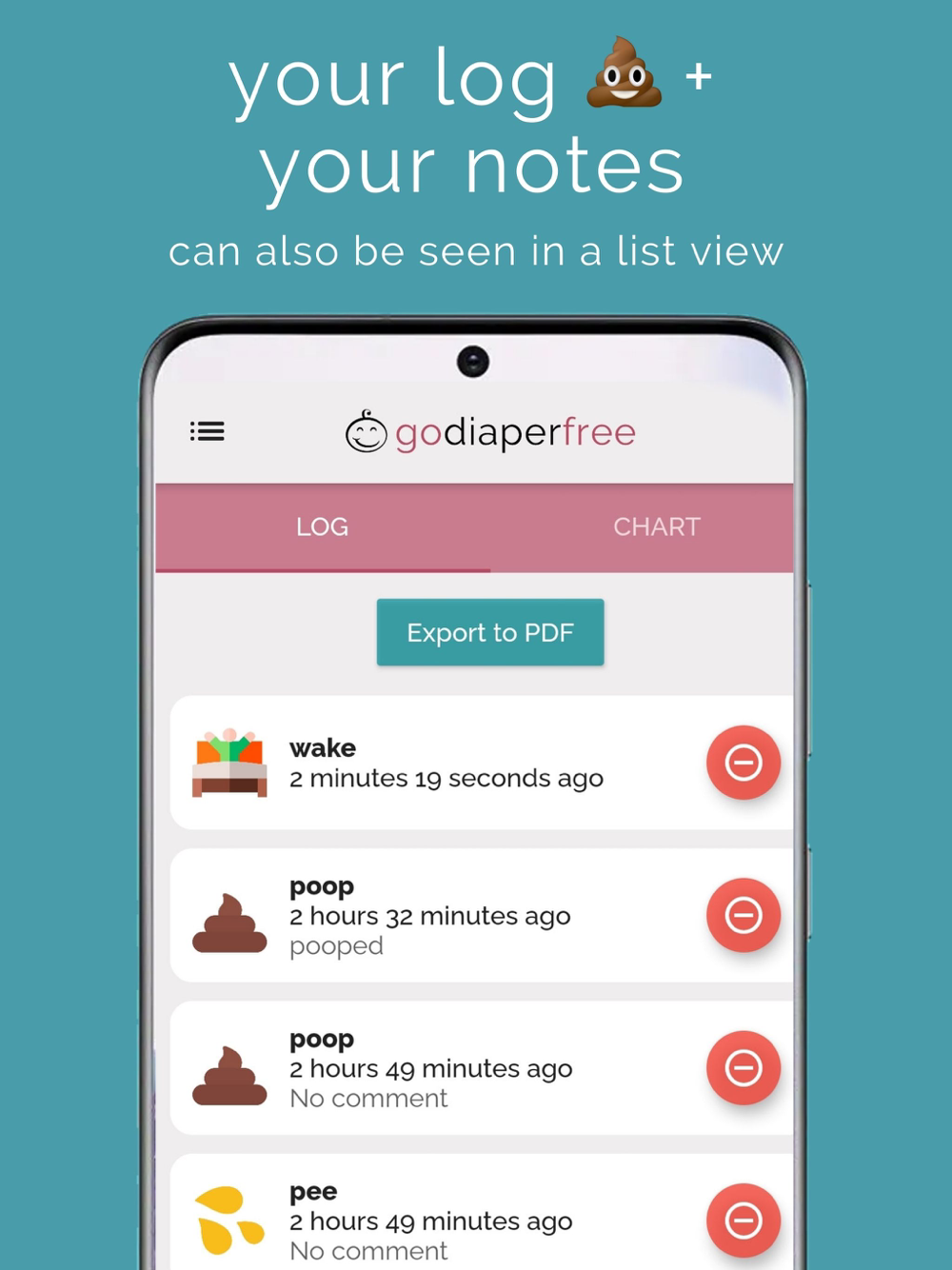 No more paper printouts and chicken-scratch logging, no more guessing “how often does my little actually pee or poop?”…now you can simply open the app and, starting at either waking or feeding, track how often your baby or toddler goes. Then download a PDF of your results.