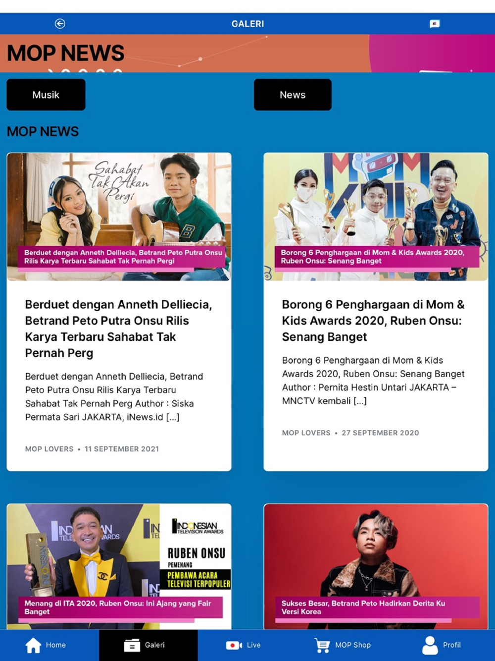 Di Aplikasi ini MOP Lovers bisa lebih dekat dengan fitur-fitur terbaru yaitu