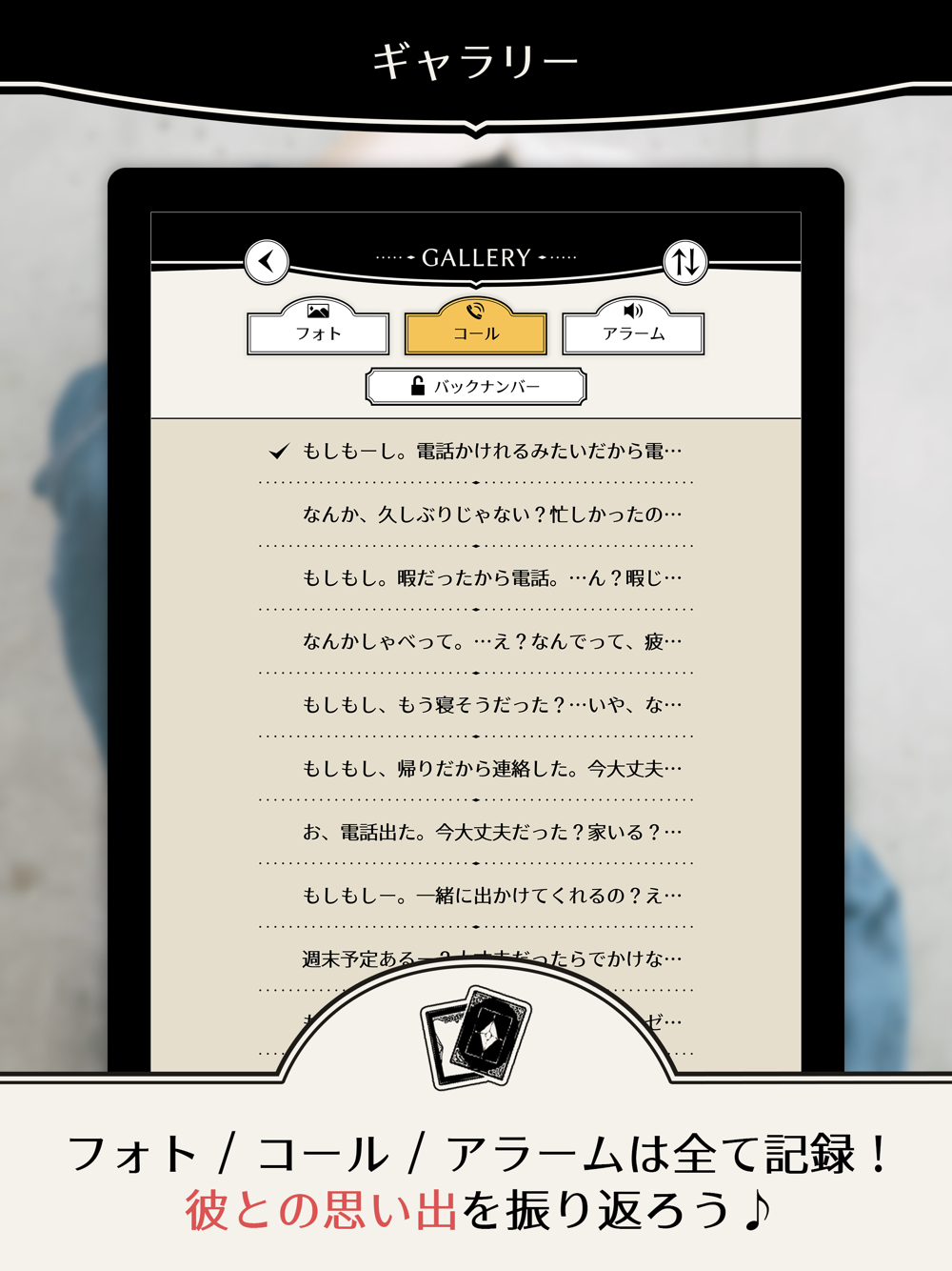 チャットの他にもアプリの為の新規ボイスやフォトなど、コンテンツが満載!