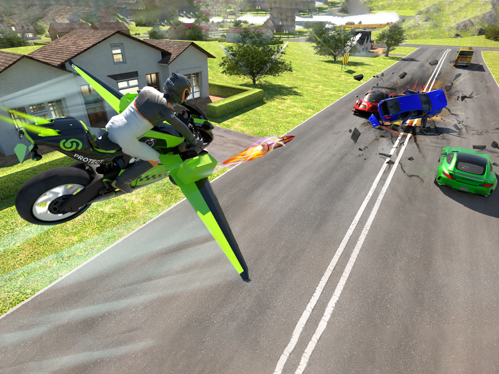 Now enjoy bike riding high in the air, be a bike rider and fly motorbike in the clouds. Flying airplane and helicopter is a common thing. We are challenging you to ride on the motorcycle and fly your bike high in the sky.