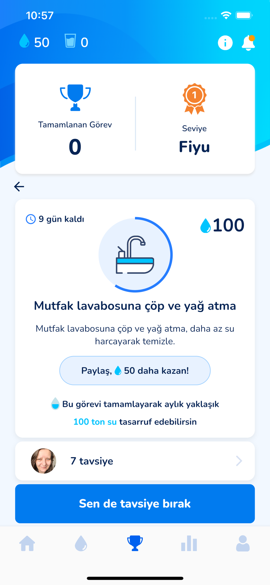 Sürdürülebilir bir dünya için, doğal kaynaklarımızı korumak ve bilinçli tüketmek hepimizin görevi. Su, en kritik doğal kaynaklarımızdan birisi. SUNA, sizin kullanım alışkanlıklarınızı bir soru seti aracılığı ile öğrenip, size ait su ayak izi hesabını yapıyor ve su tasarrufu da yapabilmenize olanak sağlayacak görevler ile hem farkındalık oluşturuyor hem de gelecekte çeşitli faydalar sağlama ihtimaliniz olan Damla’lar biriktirmenize imkan tanıyor. Bunları yaparken aynı zamanda yaşadığınız şehrin de su tasarrufuna öncü şehirler listesinde yukarı basamaklara tırmanmasına katkıda bulunursunuz!