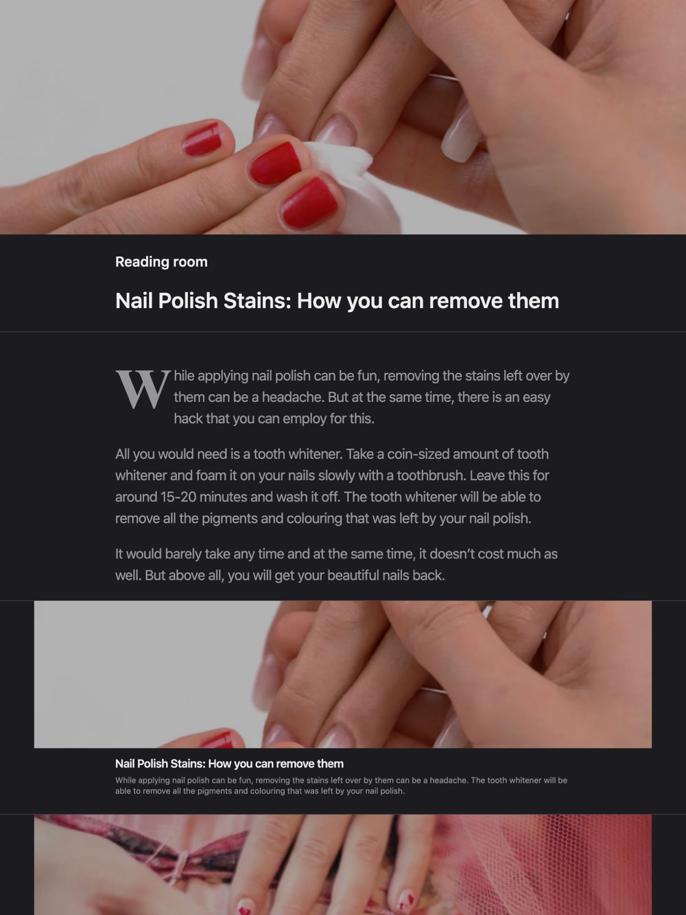 The manicure is a skincare procedure that gives a beauty makeover to your nails and softens the skin on your fingers. A pedicure gives the same treatment but for nails and skin on your legs. Both these skincare techniques are available at any salon, but did you know that you could do these at home by yourself? Even if offline, you can go through what our app has to provide. Get the best ideas for nail polish colors that suit you, miniature nail art that gives a sense of awe, tattoo design tips for a fashion look, etc. Once you learn to provide care for your nails and skin with your manicure and pedicure procedures, you will have fulfilled your skincare needs by yourself.