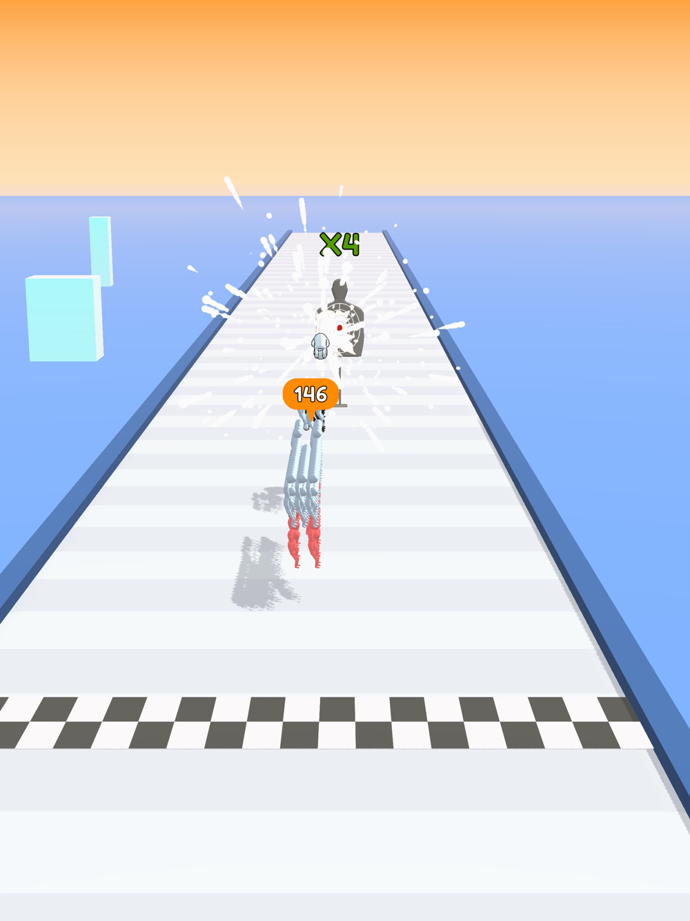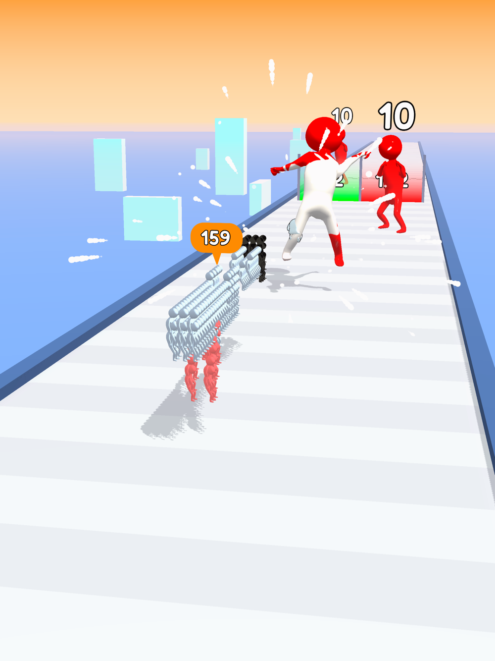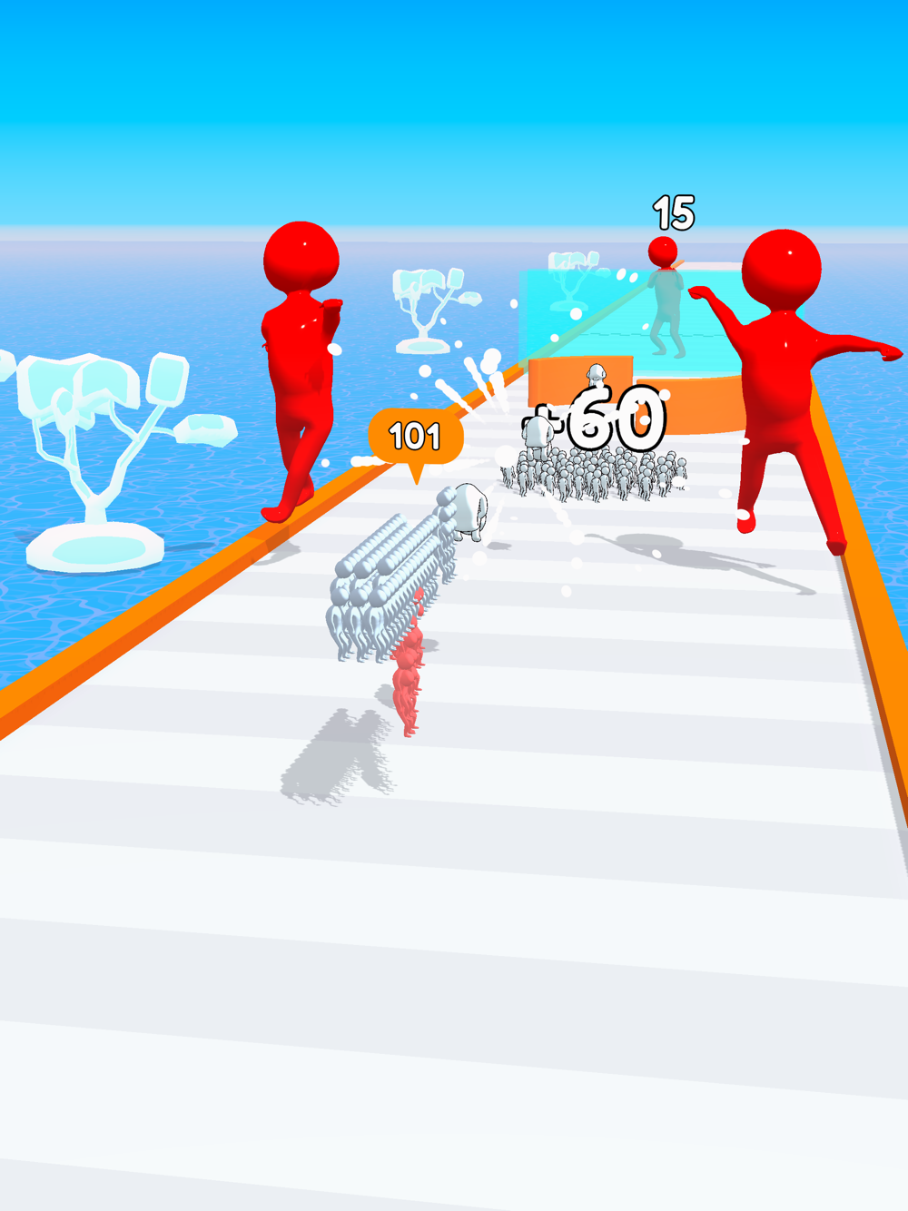 Move from side to side along the track and collect people into a huge crowd. When an enemy appears, TRANSFORM them into a firearm.