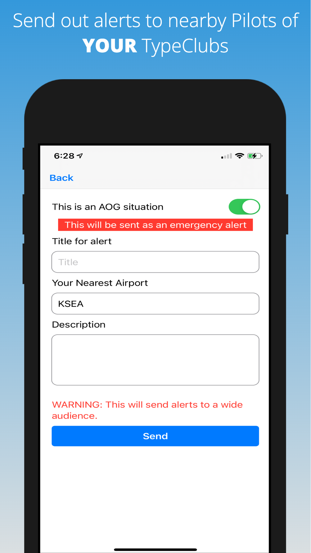 Download the AOG Alerts App to stay in touch with local pilots of your own typeclubs. With AOG Alerts, you can get alerted when someone in your vicinity gets grounded. You can use the app to provide assistance in the form of transport, parts etc. as needed.