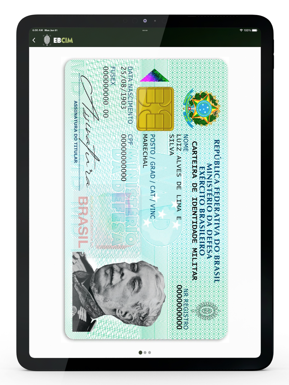 O aplicativo EBCIM consiste na versão da Carteira de Identidade Militar - CIM Física para dispositivos móveis. É apoiada por soluções de segurança que dão “fé pública” aos documentos digitais emitidos, ou seja, contempla os dados pessoais da identificação, de forma que a sua