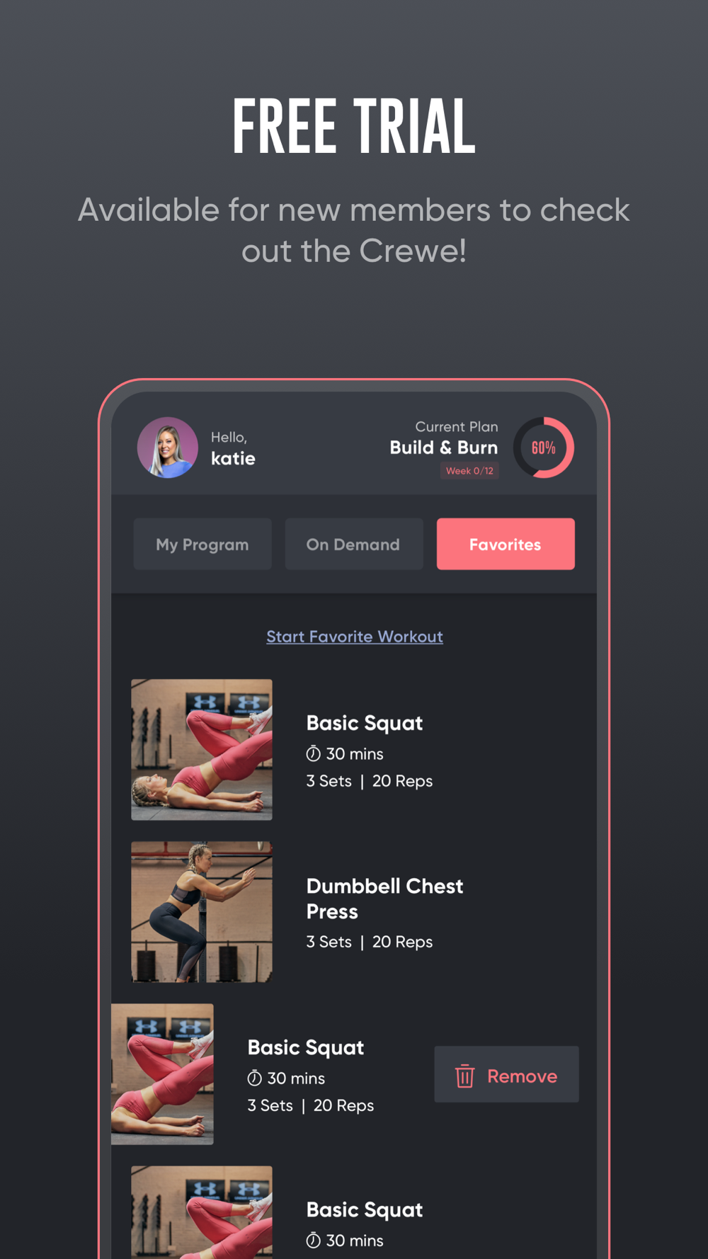 Gain confidence through strength, with intelligently programmed home and gym workouts by Katie Crewe. Join the Crewe and the community of over 1 million people who are making fitness a lifestyle and not a fad.