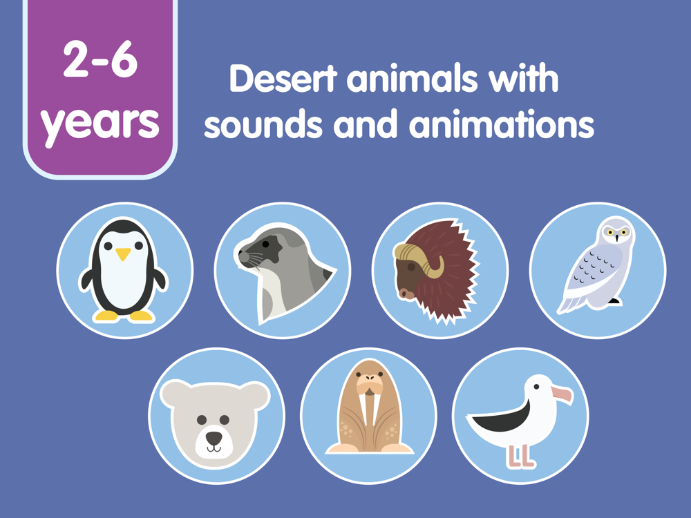 The arctic polar region is the far north and the Antarctic polar region in the far south. They are very cold places. Lets learn about some polar animals. Teach your little one about the wonderful world of Desert animals using this amazing learning app for children. Interactive learning experience to your kids through educational videos animation and more with this amazing memory puzzle. This app helps children learn names as well as spellings. Polar Animal Learning App For Kids Education Offer your kids early education a much-desired boost of interactive learning with one of the best kids educational apps available online. Whether you want to learn about Polar animals together as you spend quality time or want to help your kid learn animal spelling, this animal learning app is a perfect pick for all your needs. Play and solve the animal games for kids. Teach interactive facts in a very interesting and child friendly way to improve their general knowledge, science and more. Solve Memory Puzzle for Interactive Learning Will you like to offer your kid the convenience and pleasure of interactive learning? With this Polar animals learning app, your kid can select a memory puzzle and watch educational videos in an interactive learning environment. The educational videos help kids learn new words and animal spelling without much effort while enjoying the curated content for kids. Features of Learn Polar Animals Names For Kids Preschool learning Simple and easy to use kids educational app UI/UX Find animal games for kids to learn new words actively Learn animal spelling with interactive learning educational videos Solve memory puzzle for boosting kids memory in animal learning app Meet realistic animal for kids game goals and gain appreciation Download and play Learn Polar Animal Names For Kids Preschool learning today! Please check out our new Animal World App in our store to get a free experience of this app before purchasing. Thank you Kokotots.com