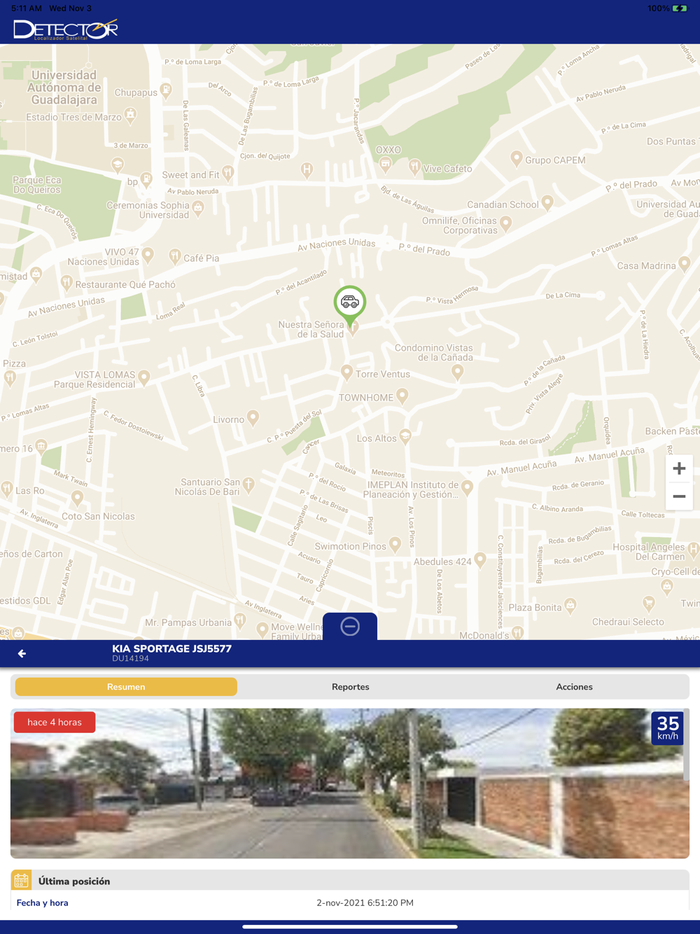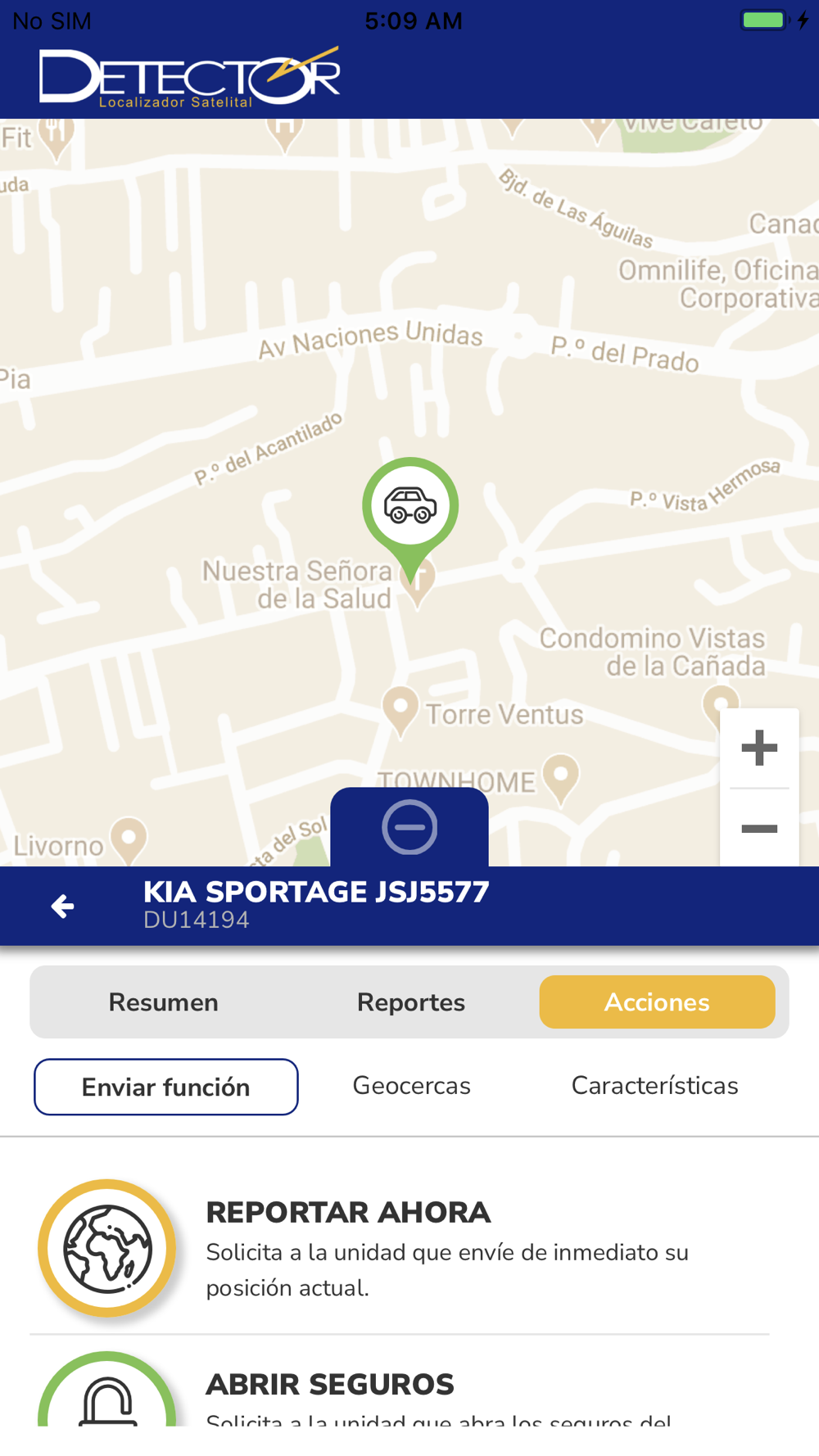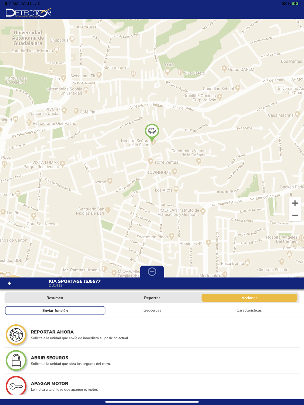 DETECTOR Localizador Satelital ofrece a todos sus clientes desde su dispositivo a todas sus unidades, para ver ubicación en mapa y en fotografía de calles, acceder a los reportes y enviar funciones (Como apagado de motor).