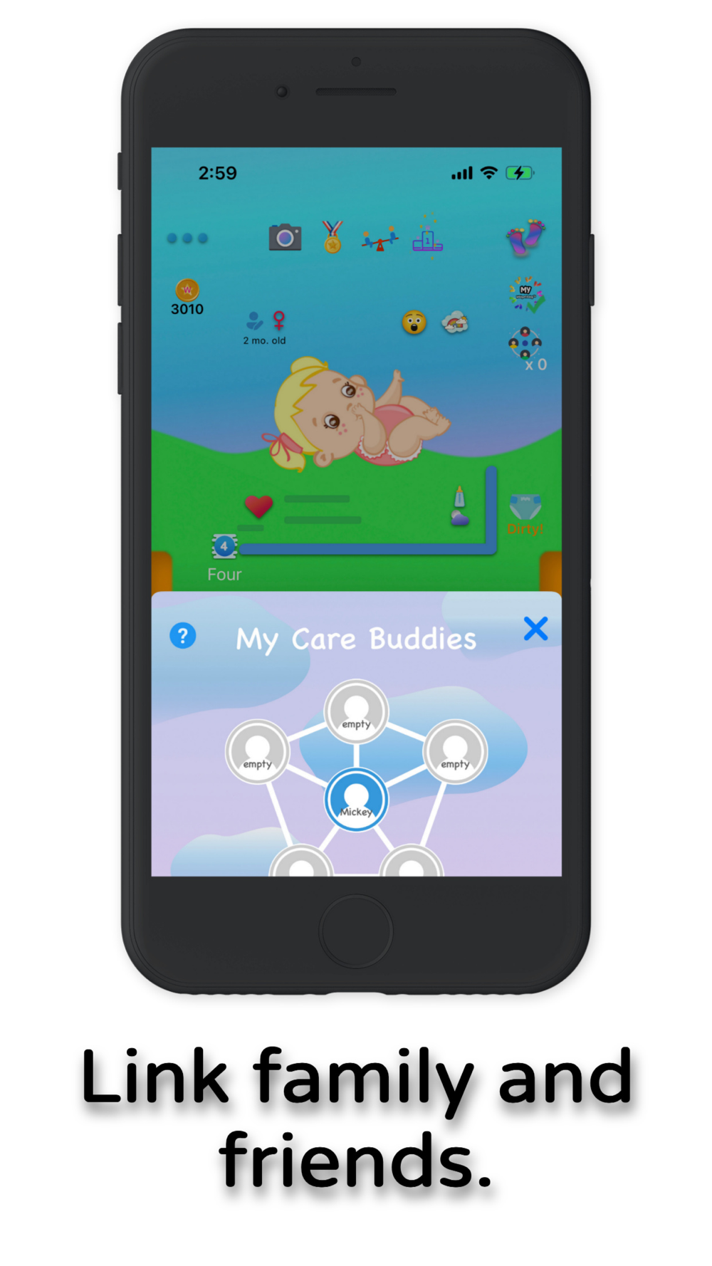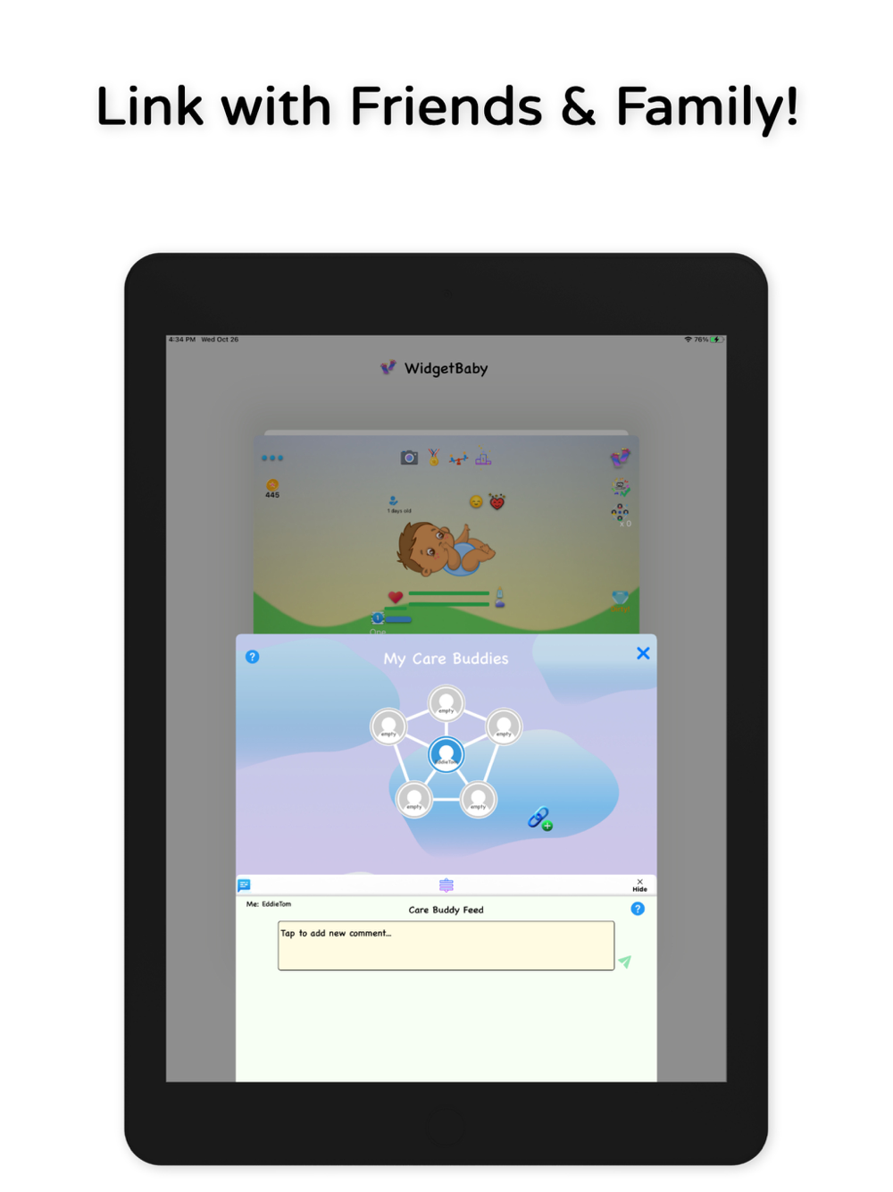 ◆ Friends™ - Link with others to care for the same widget baby and engage together in the care buddies feed!