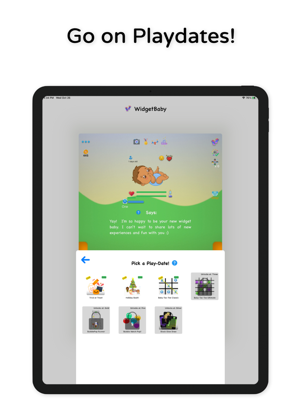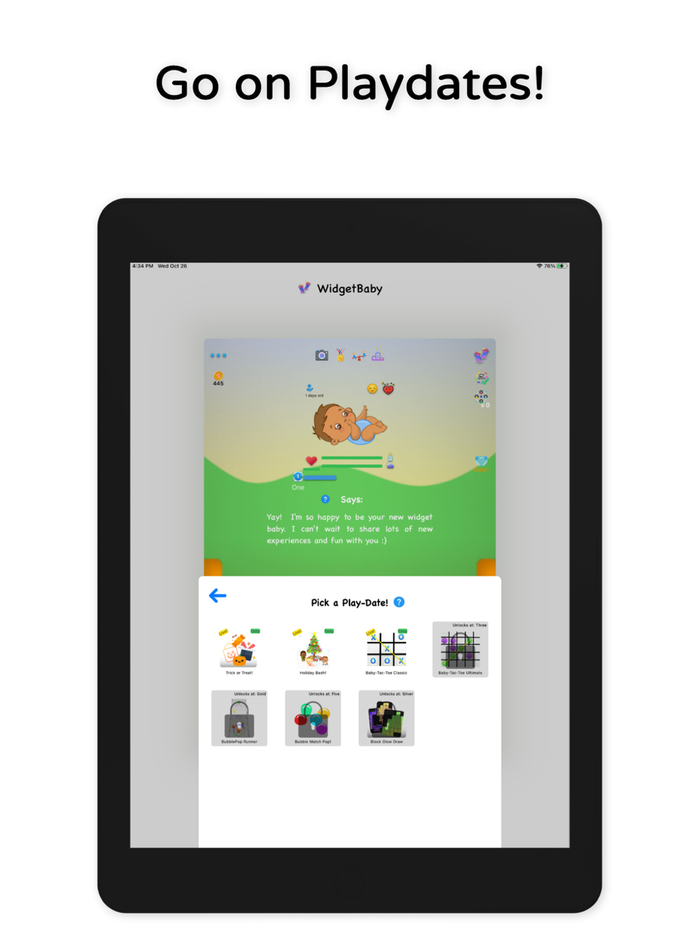 • Go on playdate mini-games and compete with other widget babies live as you climb the world-wide WidgetBaby leaderboard!