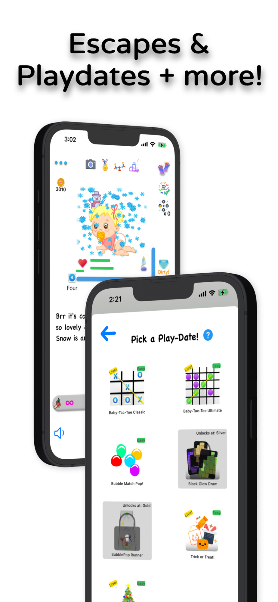 ◆ PLUS more like sending your baby on festive and unique Escapes or changing their outfit colors anytime you want!