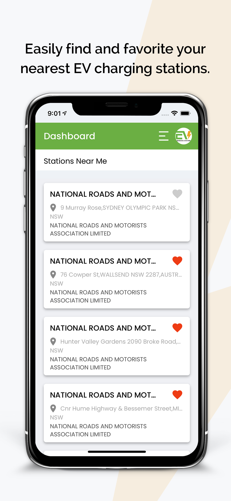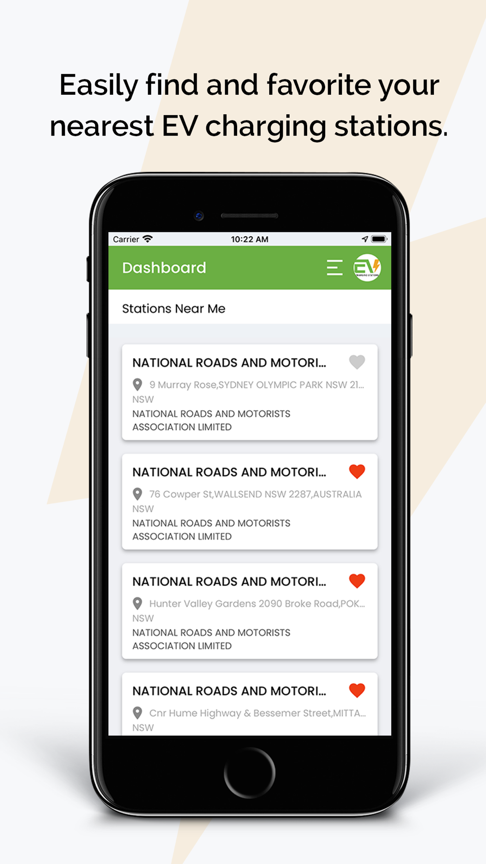 * Save and view your frequently used charging stations from your favorites list