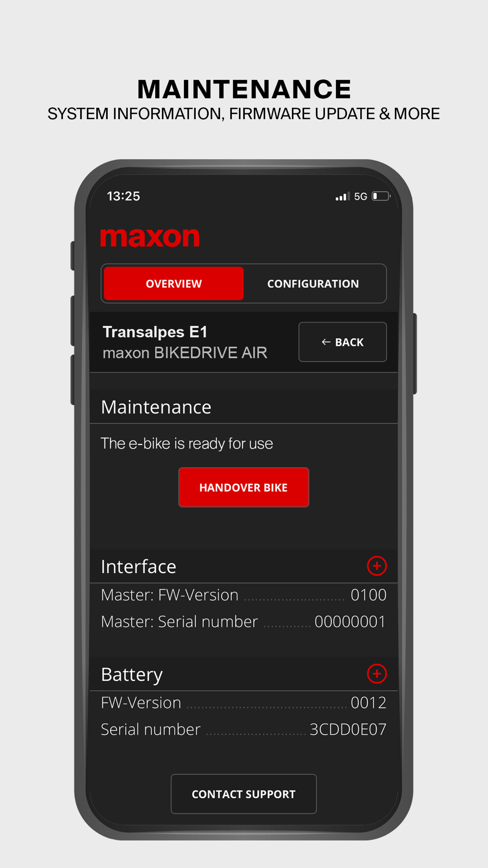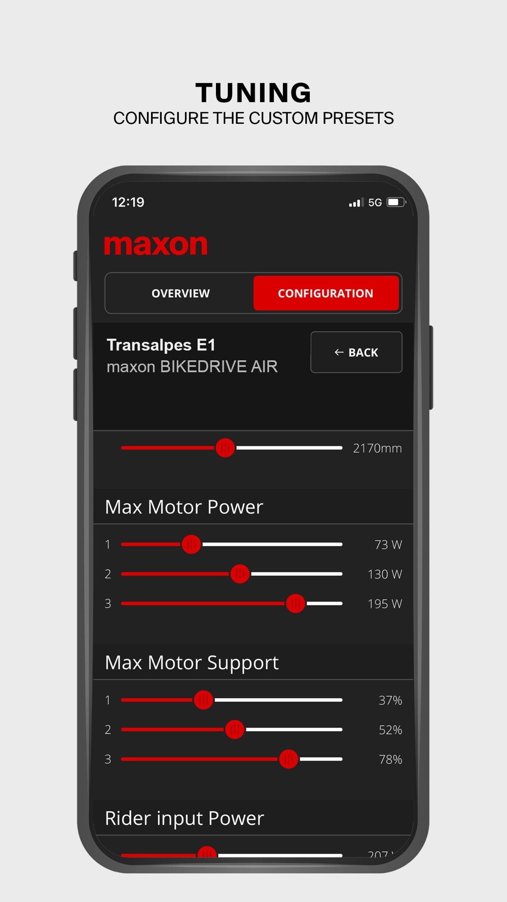 The app is used by dealers to carry out basic configurations on an e-bike motor.