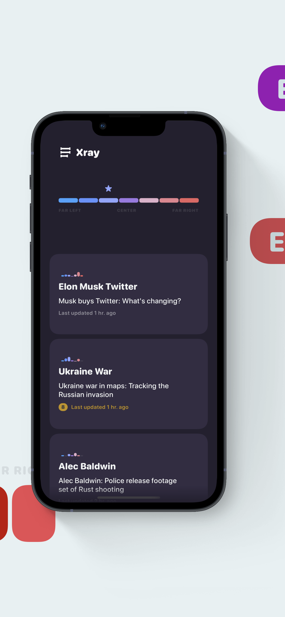 You choose the parts of the political spectrum you are comfortable with — and Xray News will prioritize the viewpoints you prefer, but make it super easy to expand your comfort zone.