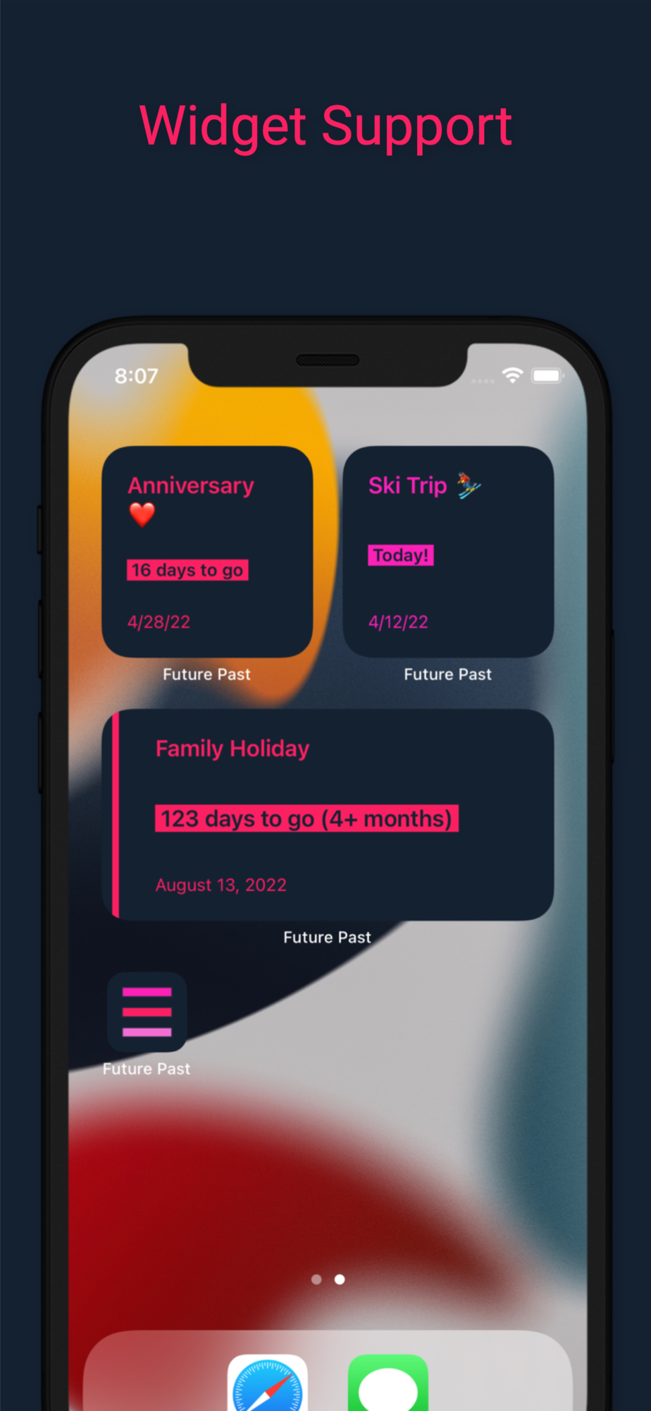- iOS widgets for upcoming and specific event
