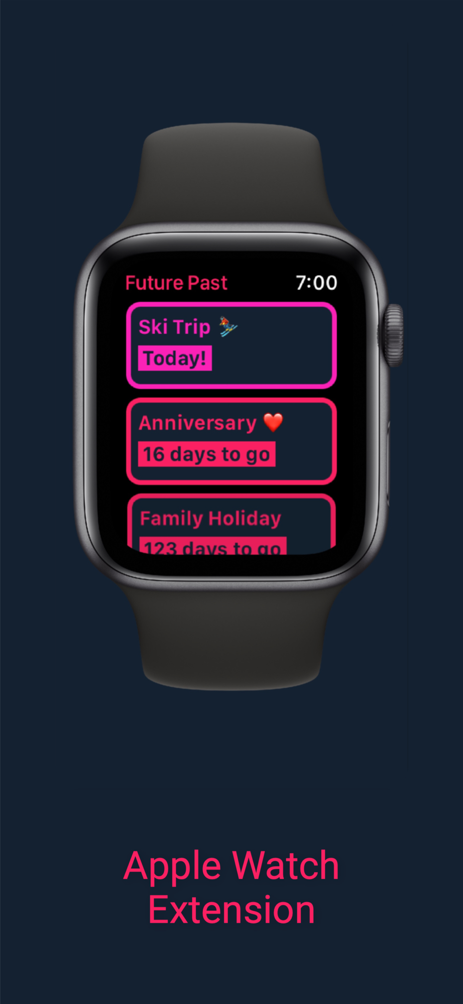 Add any event to see the days remaining or the days past.