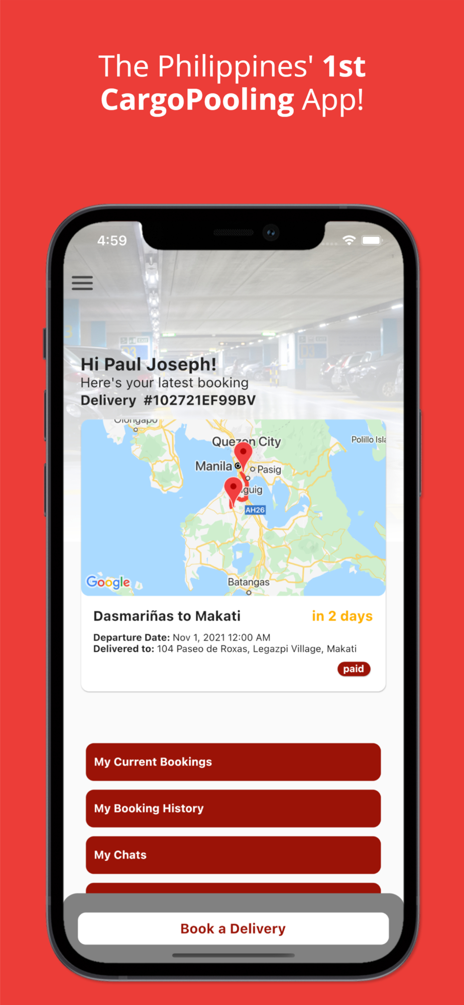 Use the app to create a booking for your delivery request and the app will connect it a driver to pick up your items from your work or home address and deliver it to any location in the Greater Manila Area, South Luzon, Central Luzon, and Bicol. Raketship can also send your deliveries from province-to-province.