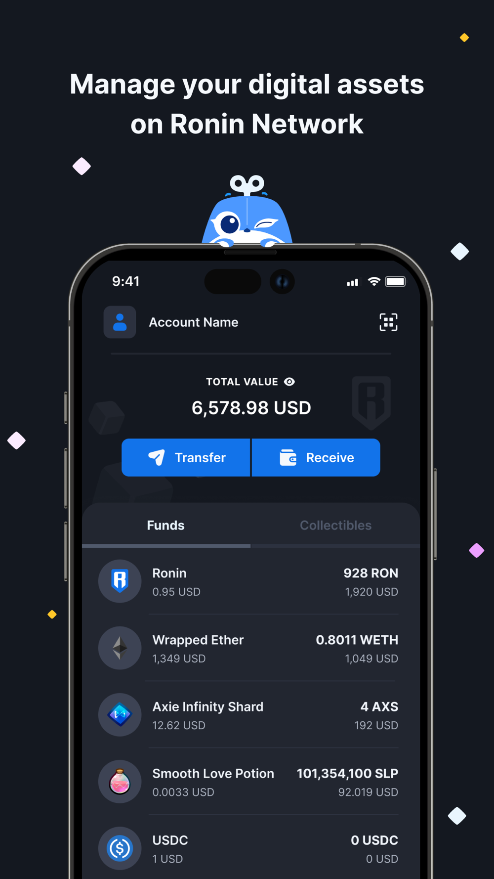 This application allows users to see and transfer the assets they own on the Ronin Network.