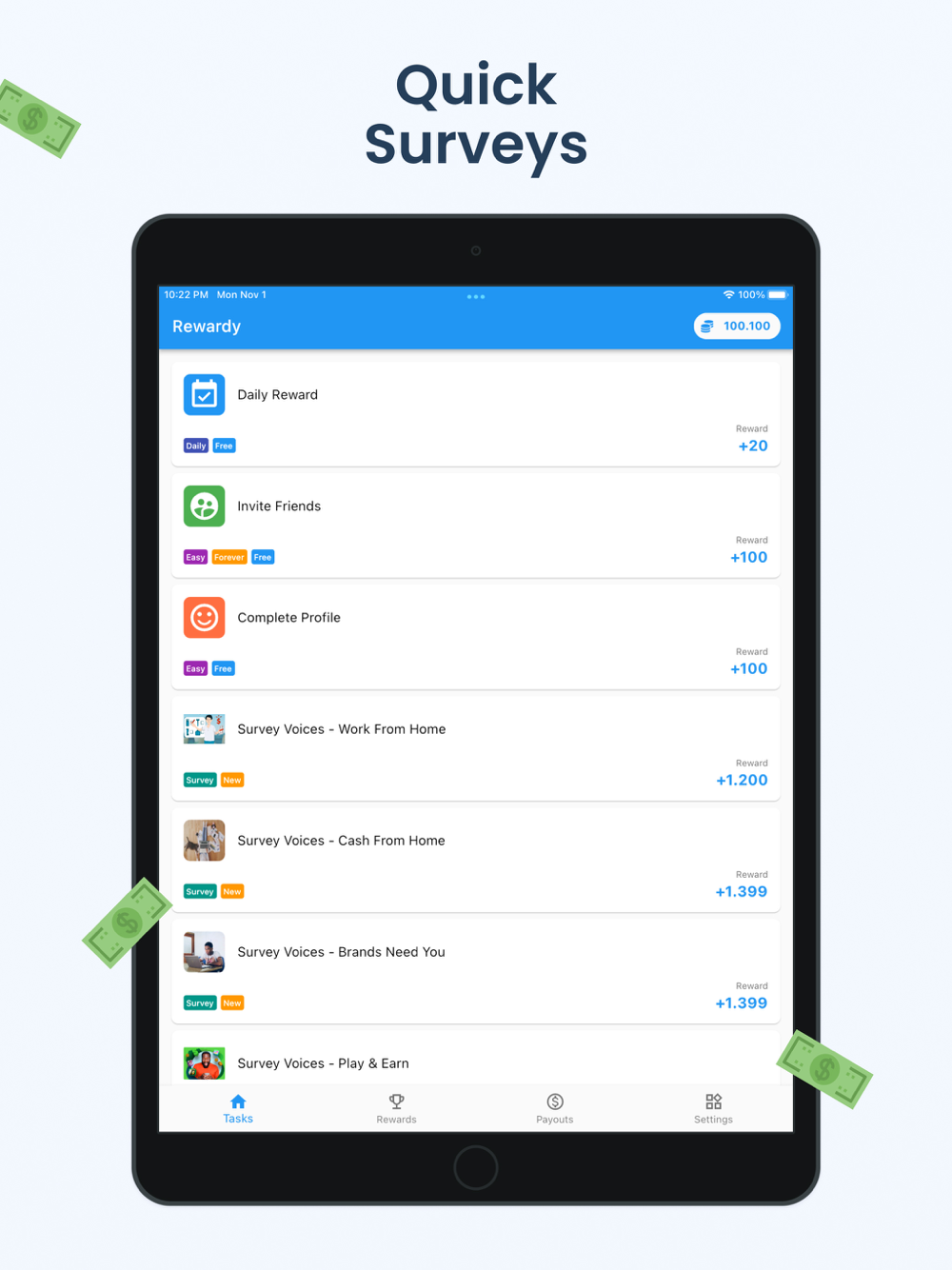 This is the new way to make side cash: Rewardy has you covered to earn extra cash rewards to your PayPal account. With Rewardy you can earn cash playing free video games or filling in paid surveys. Further tasks can be found for more money rewards. Let’s start your work from home life with this real cash app.