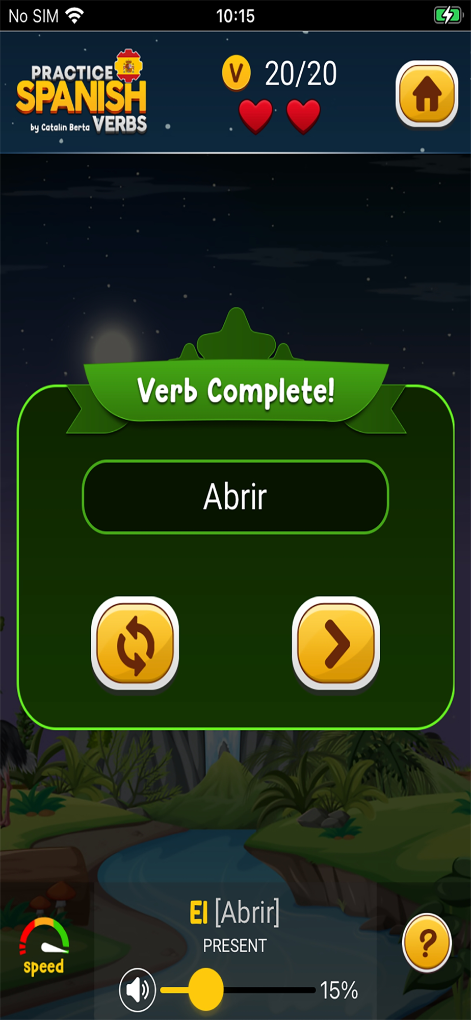 You can pick the tense and the type of verbs (common, uncommon or all) and play a fun mini game by tapping on the correct conjugation. This repetitive but fun game will help you better memorize verb conjugations and be able to react and talk faster.