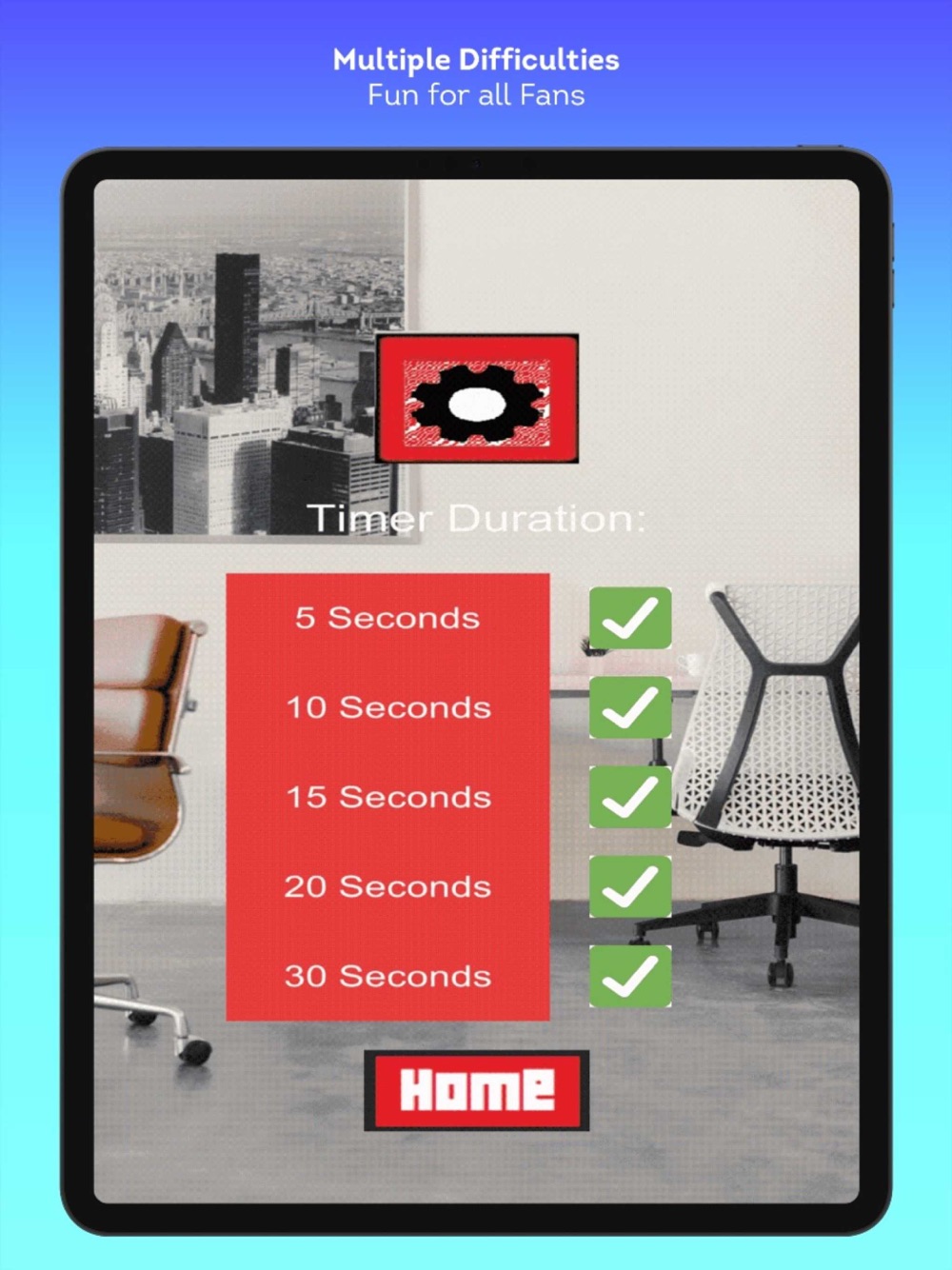 To make the app enjoyable for all players, we added the option to select a difficulty level. Difficulties are based on the timer settings.
