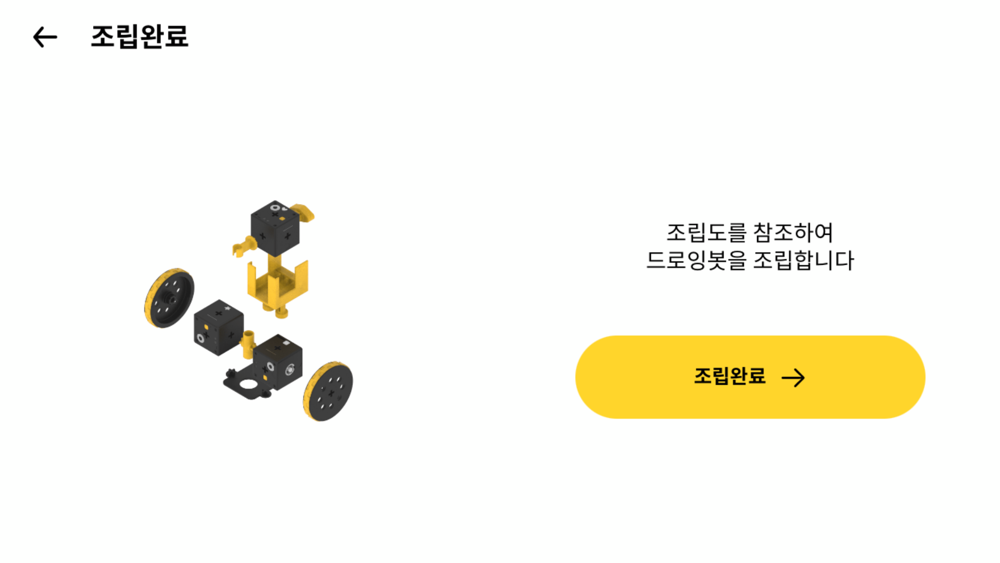 Check the first cube on the app screen. Press the power button on the assembled robot in the order shown on the app screen. When the first cube connects successfully with the smartphone, a pairing signal and beep will sound.
