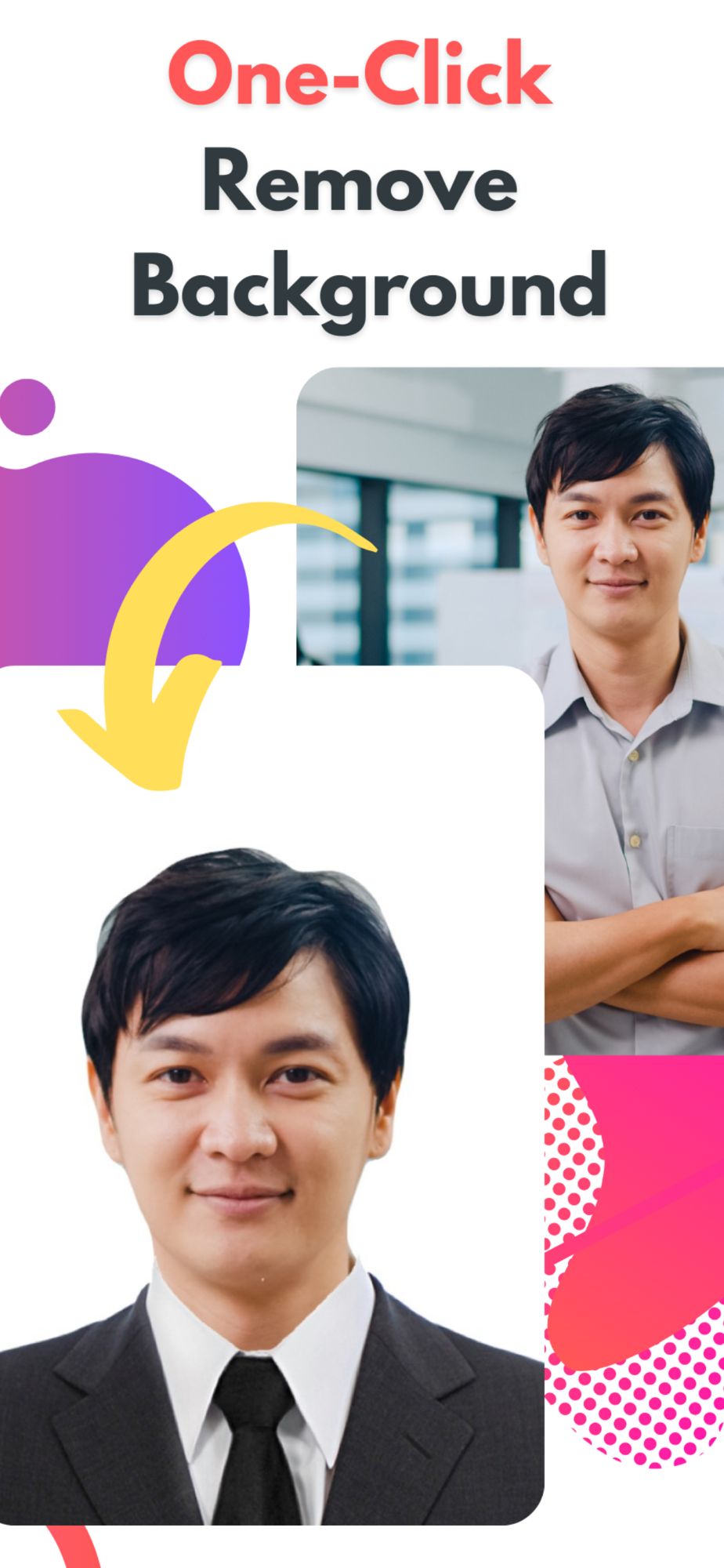 Automatically remove background, add formal clothes, suit.