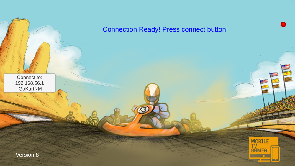 For the app to offer the connect button on the starting screen the instance of the game (GoKart New Mexico) has to be running (on Windows or Mac computer) in the same local network as the wifi of the cellphone is using. The game is broadcasting its game host info which the app captures and creates the connect button. In case more than one instance of the game is running in the local network - more connect buttons will be offered for connection.