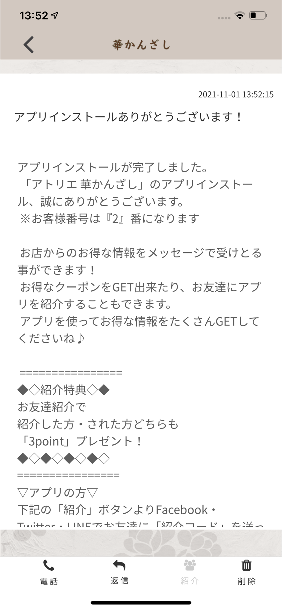 華かんざしのアプリをSNSを通じてお友達に紹介する事ができます。