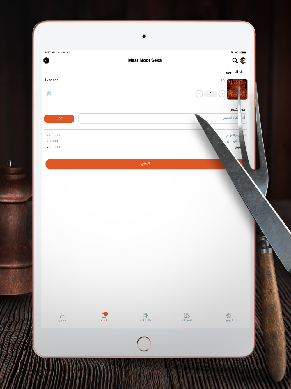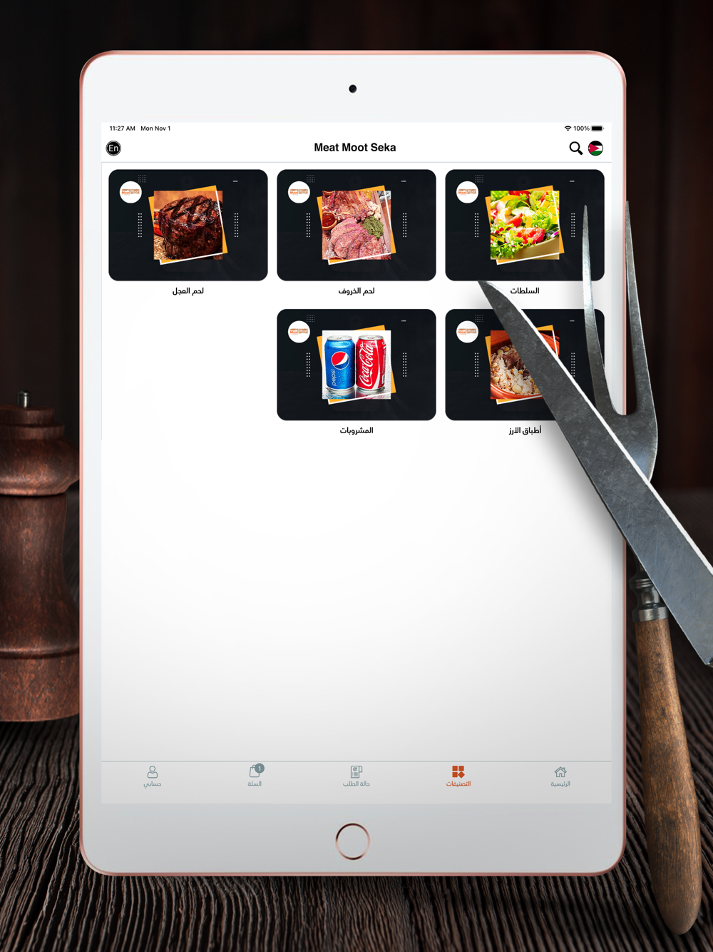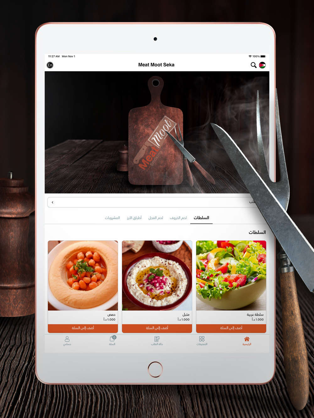 Meat Moot application is a grilled beef restaurant application. To order from the app please follow the instructions: open the application, then click on the suitable category, all the available dishes will appear to you, add what you want to your cart. Finish the process by filling the wanted information to have your order like: the preferable payment method and the delivery information.
