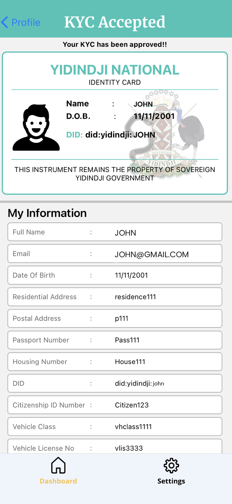 Yidindji SSID is an identity and digital currency wallet for Sovereign Yidindji Government and Sovereign Yidindji Dollar. Through this App, user can manage user’s private information in the form of Verifiable Credential(VC)s. These VCs are issued by the public identity such as the Governments, Banks, Hospitals, Universities Web Sites, Shopping Malls, etc. Government issues VC (Signed Document) related to nationality of the user. The issued VCs are stored in the Yidindji SSID and managed by the user through the App. User can present VC to prove the identity of the user.