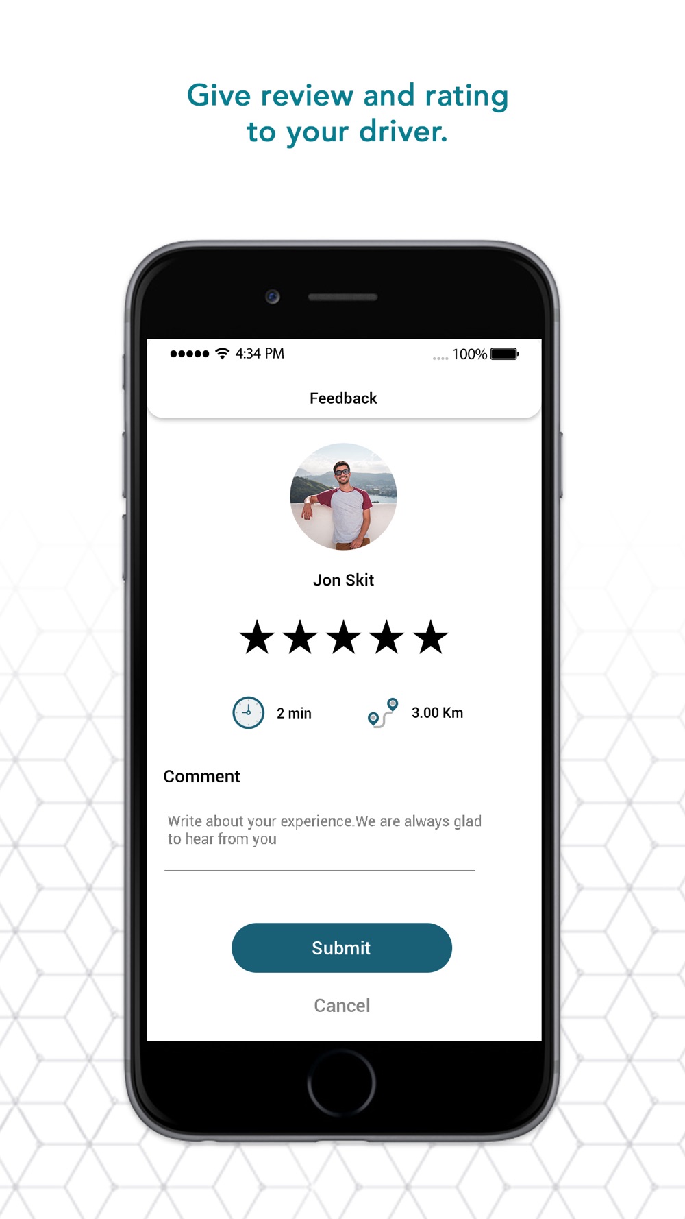 Tap the button to request a ride, get picked up by a nearby driver, and enjoy a safe ride to your destination.