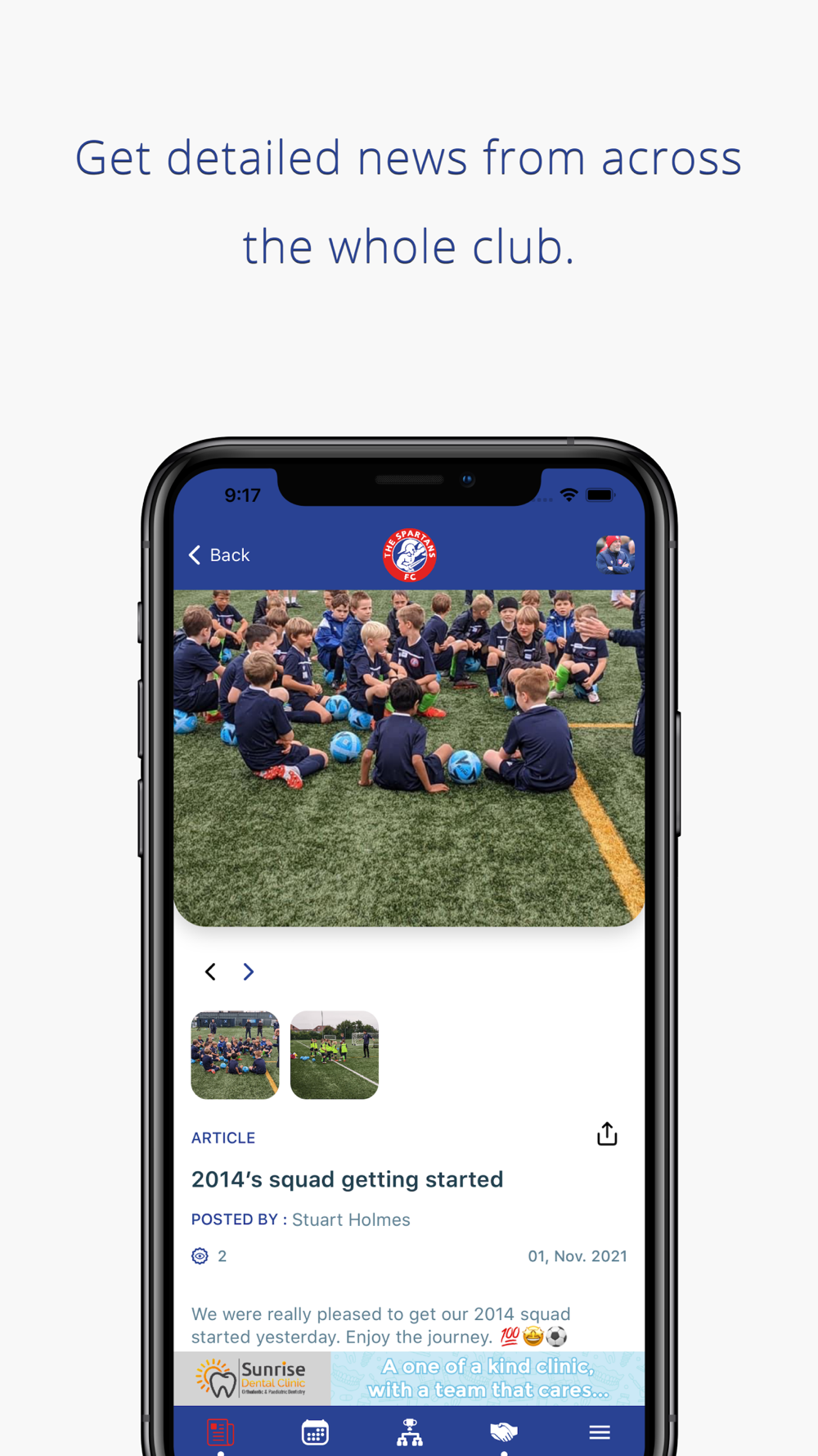 Our news feed contains stories from across the Spartans Youth teams, as well as developments from other parts of the Spartans Family to give an all-round view from the club. You will never miss an event or an update from the club again with notifications directly to your device from the app. The app also gives you easy access to information on all aspects of club membership.