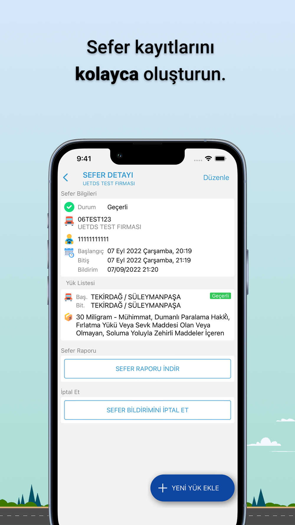- UETDS yük taşıma bildirimlerinizi mobil cihazınızdan pratik bir şekilde kaydedin.