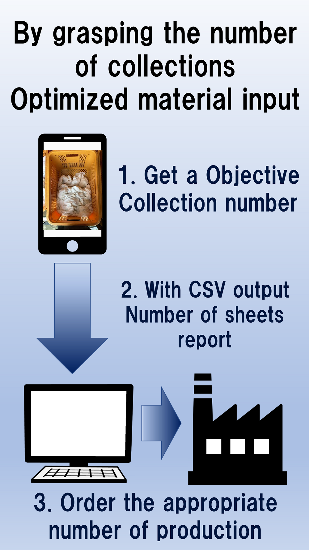 - It automatically determines whether the object reflected in the camera is a OSHIBORI collection box, and automatically releases the shutter at the appropriate timing for prediction the number of sheets.
