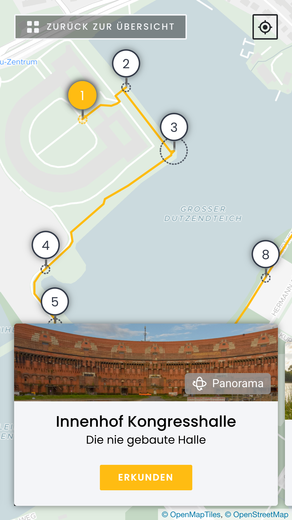 Auf dem Gelände, aber auch von zu Hause aus, wird unsichtbares sichtbar gemacht und die oft nicht mehr oder unvollständig vorhandene Architektur wird in ihren Dimensionen und ihrer Bedeutung begreifbar.