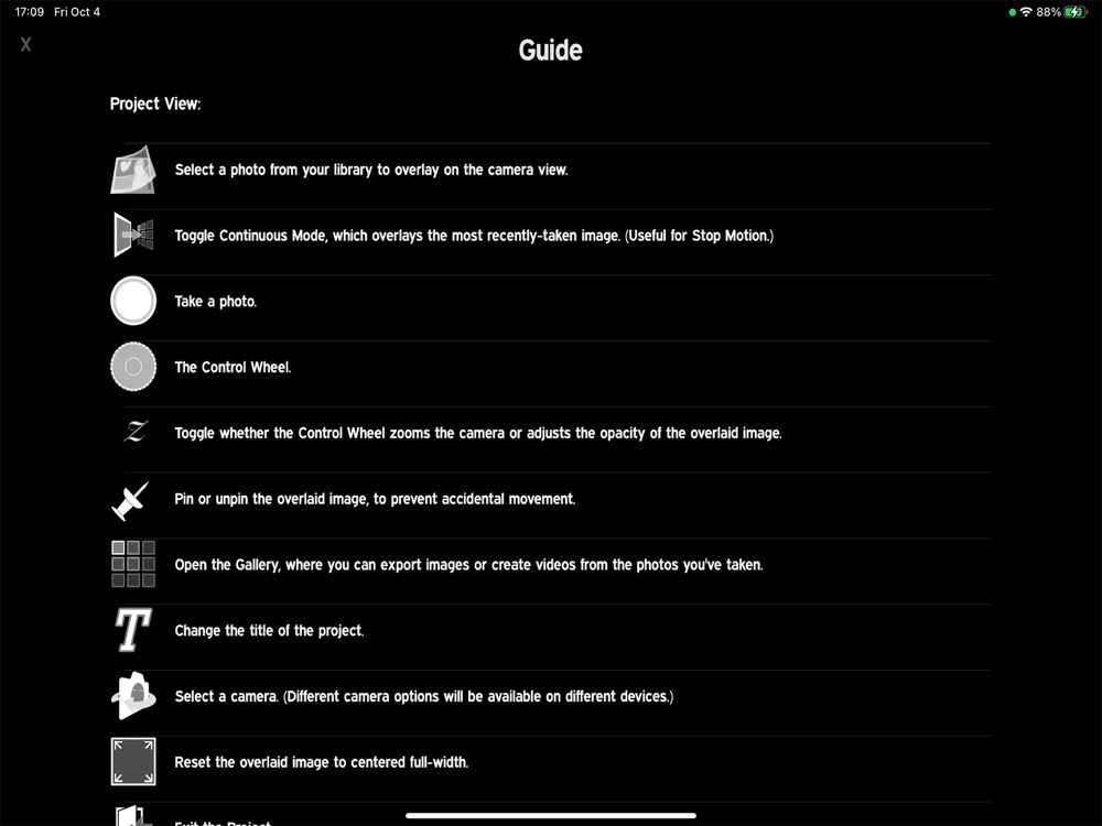 Select a photo from your library to superimpose over the camera and adjust its positioning and opacity, or enable Continuous Mode to automatically superimpose each new shot as you take it.
