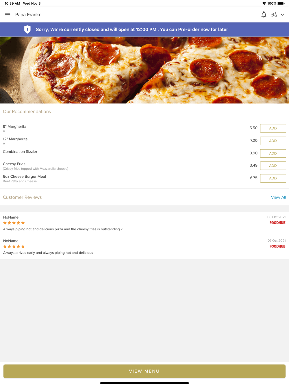 Thank you for visiting Papa Franko in Hucknall. We hope you enjoy our online ordering app and your food.