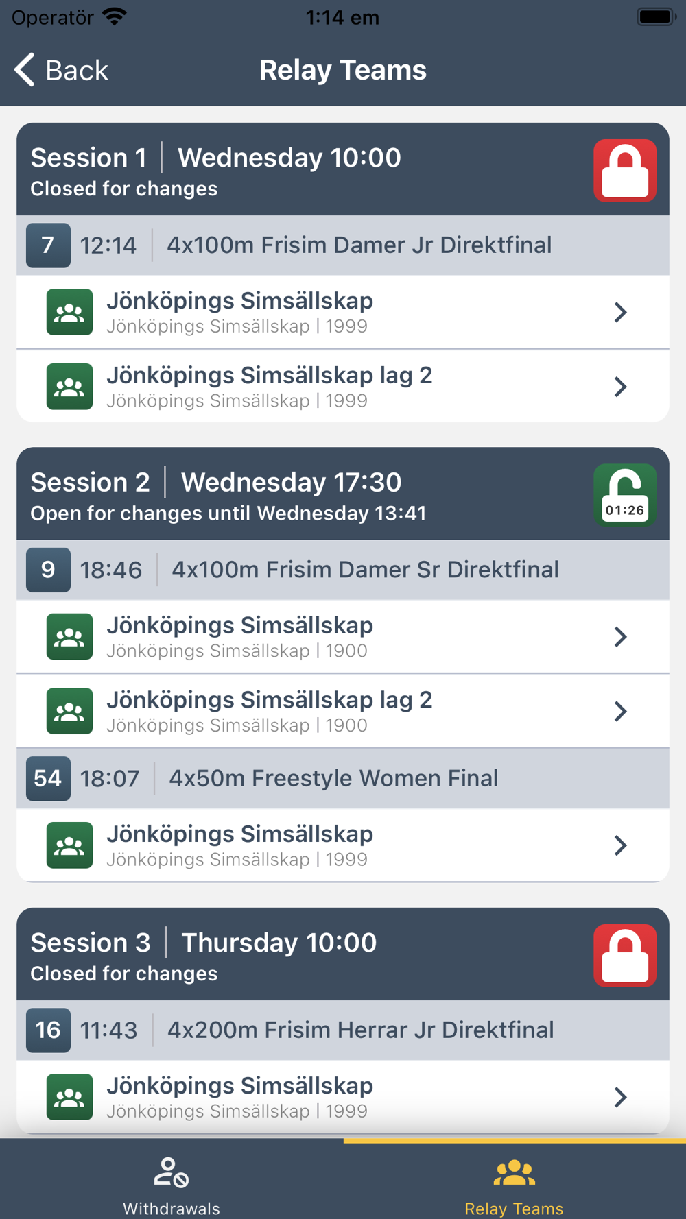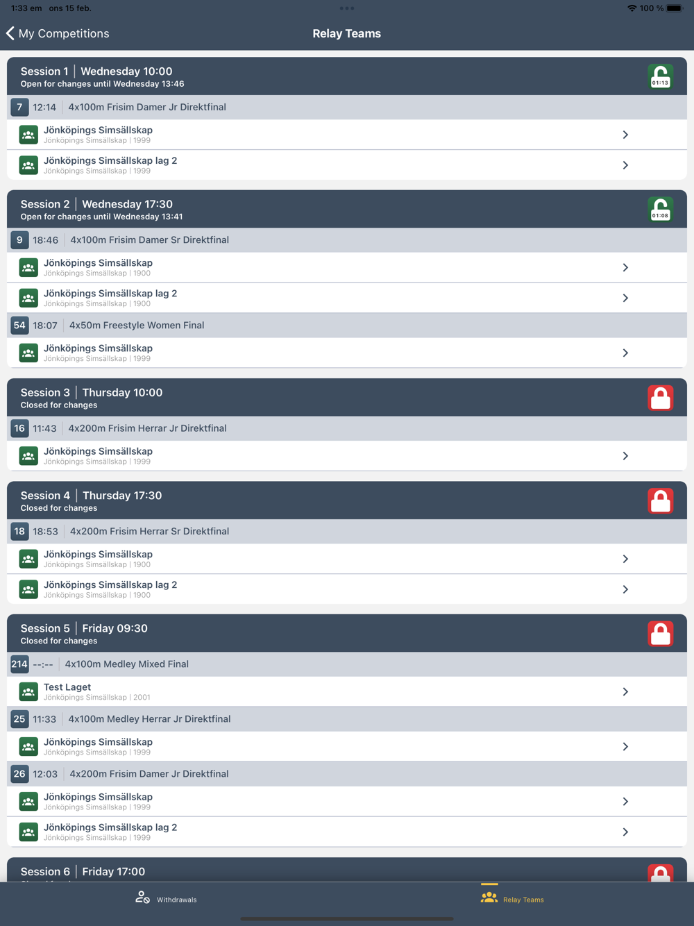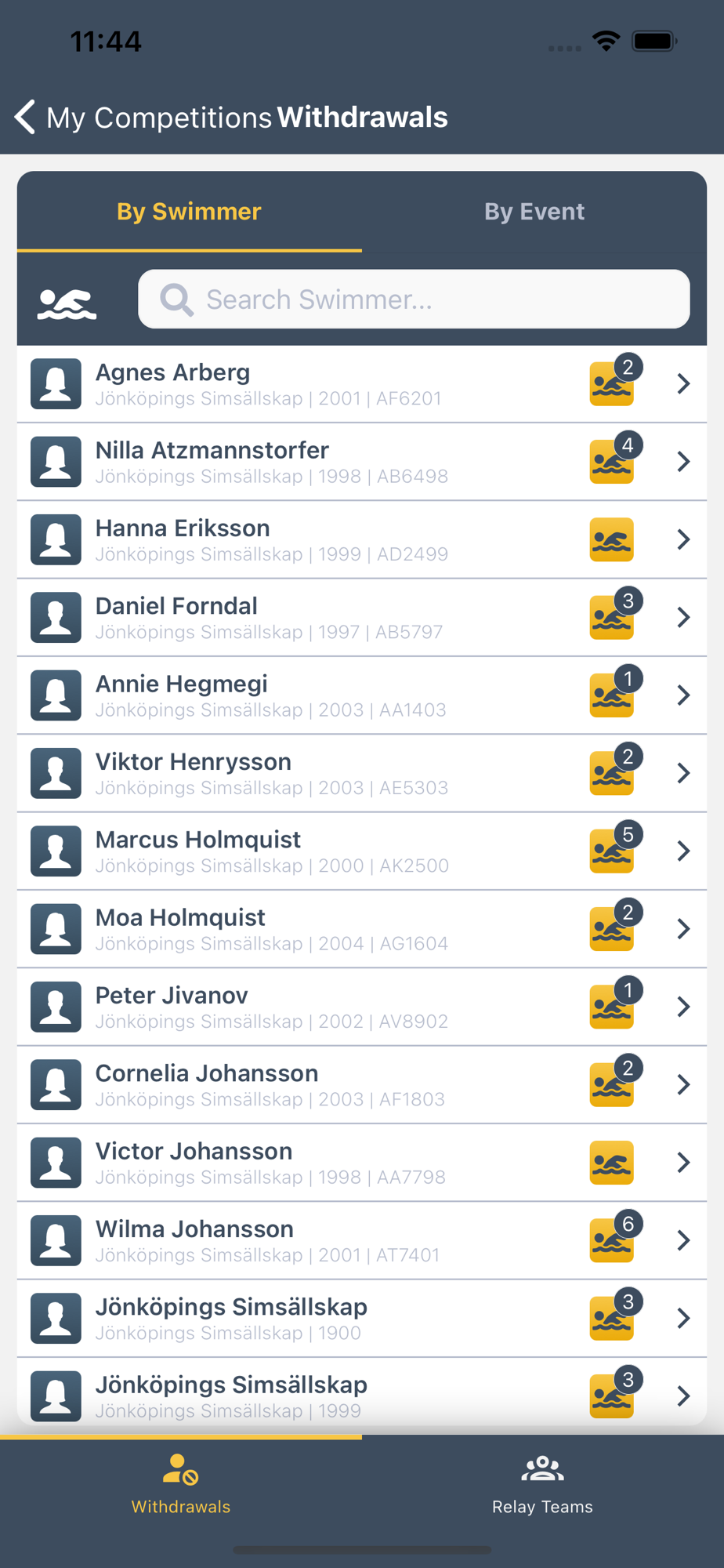 - See all the swimmers that are entered to the competition in one place