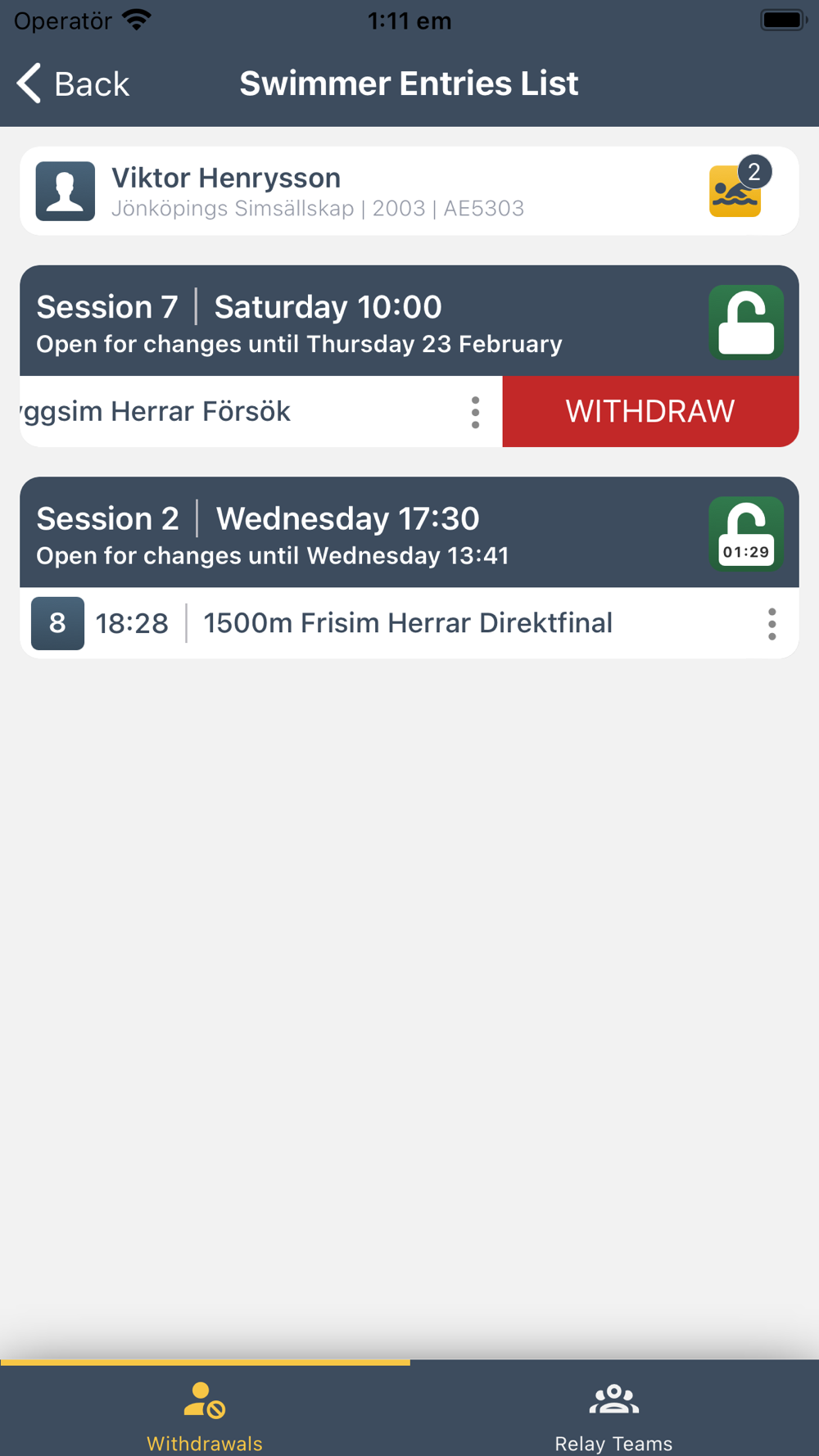 - Withdraw swimmers from events with easy interactions