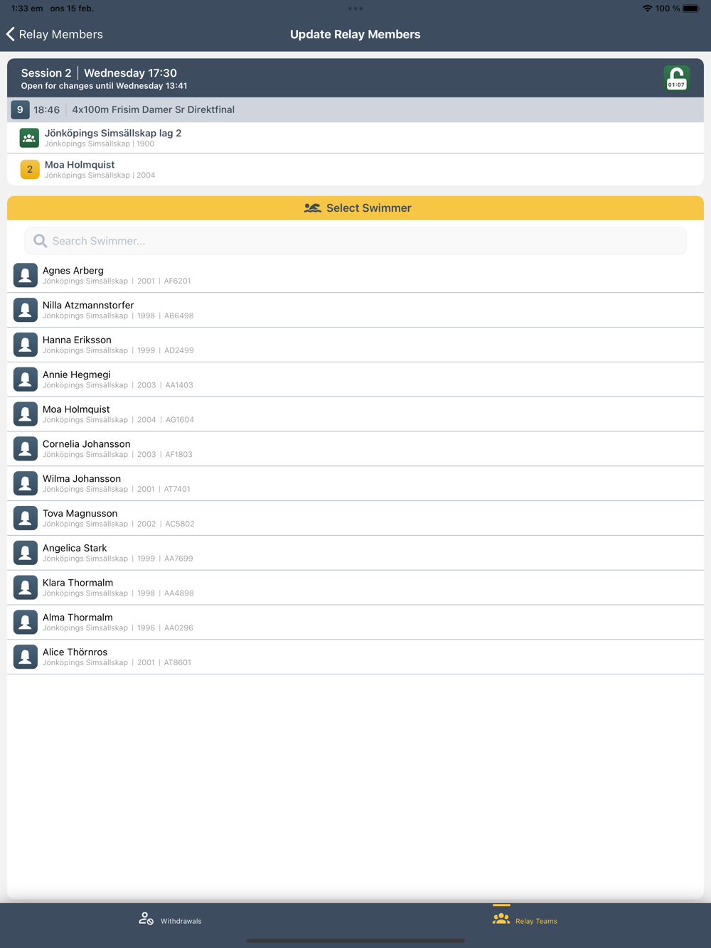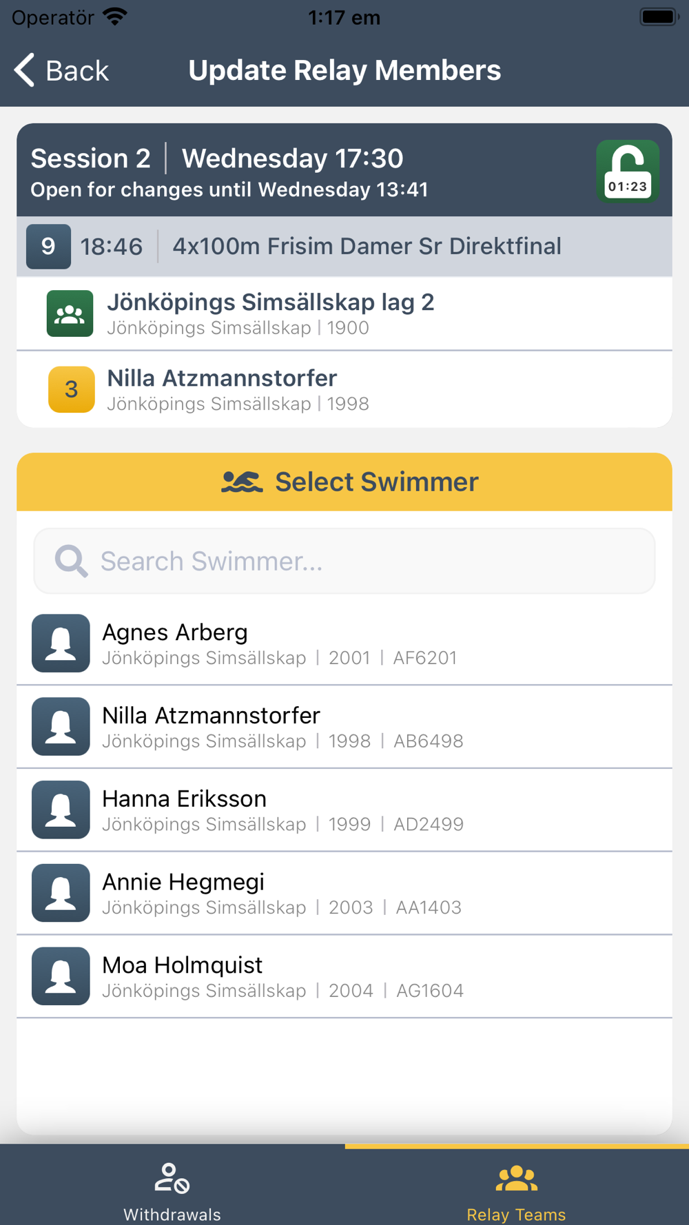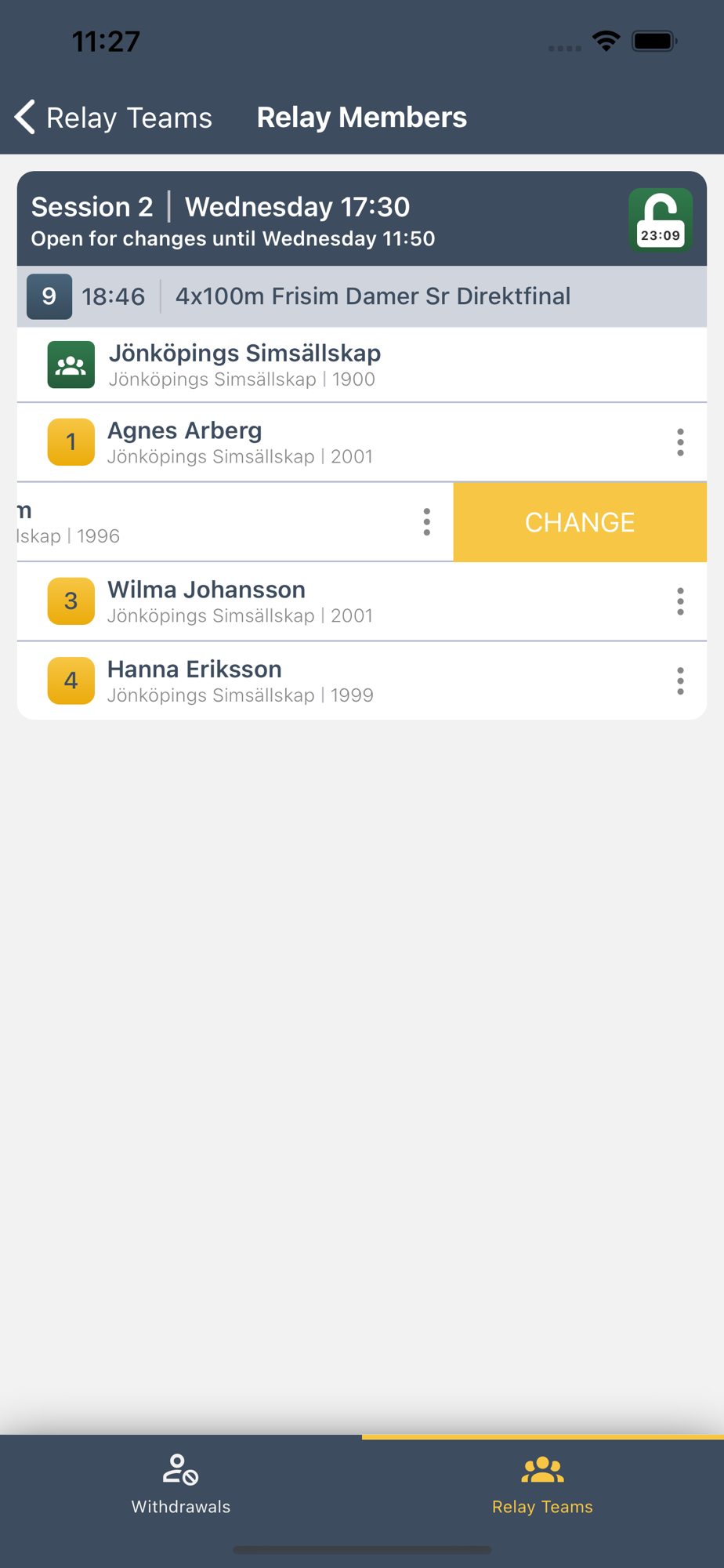 - Change the order or add new members to relay teams