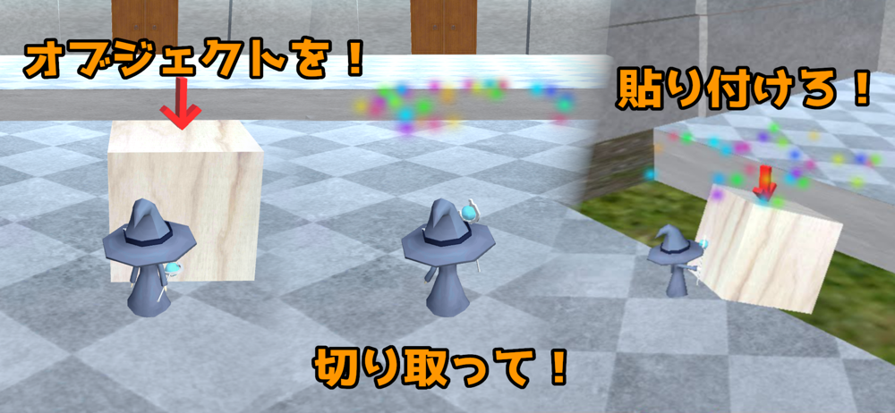 特定のオブジェクトは魔法を使うとカット&ペースト、コピー&ペーストで自由に動かせます。